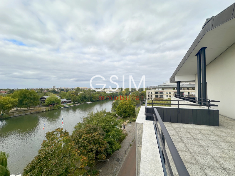 Place des Impressionnistes, au dernier étage avec Terrasses (vue sur la Seine, l'île des Impressionnistes, et le pont de Chatou), très bel appartement entièrement refait de 113 m² se composant : d'une entrée avec penderies, d'un séjour double de 43 m², d'une cuisine US équipée, d'une chambre avec salle de bains avec baignoire et douche, d'une chambre avec penderie et salle de douches, d'une troisième chambre avec salle de douches. Une cave et un parking sous-sol. Fibre.