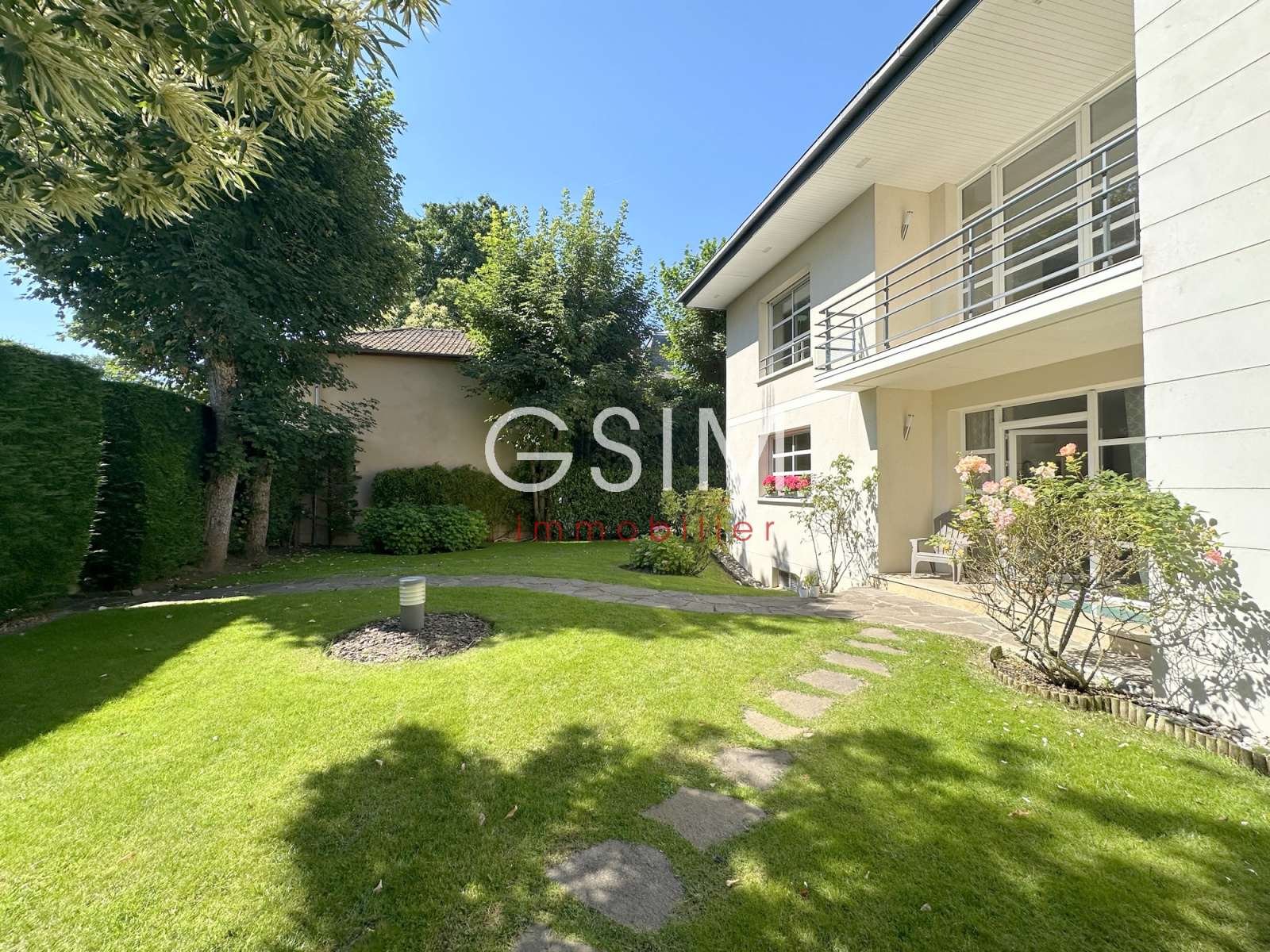 Arrosage automatique, maison sécurisée avec alarme, et éclairage dans le jardin.