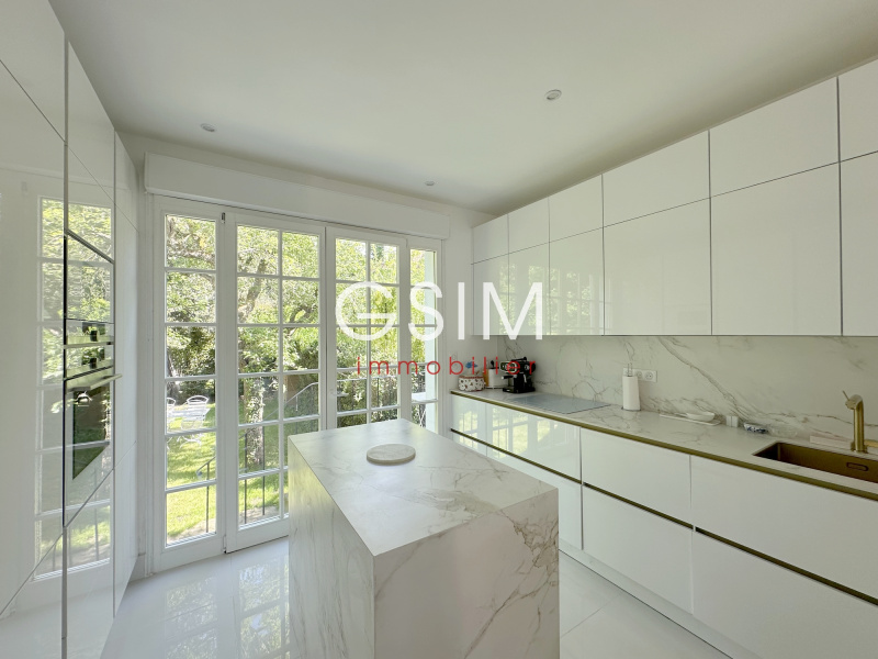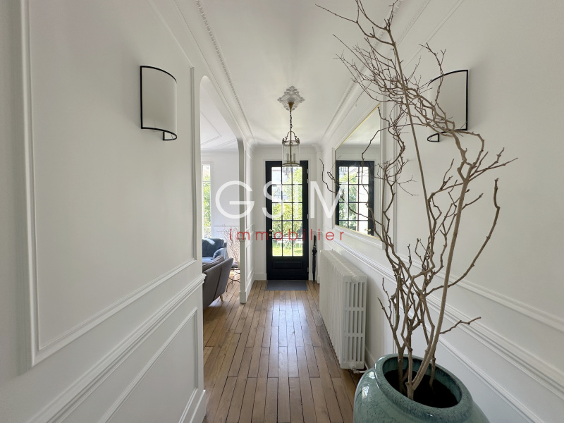 Idéal ASP et Ecole Allemande, à deux pas de la gare de Garches (280 m), des commerces et du centre ville, niché dans un petit chemin privé, maison de charme meublée de 150 m² (environ 170 m² au total), entièrement refaite à neuf avec beaucoup de goût et décoration très soignée, se composant : d'une entrée, d'un séjour salle à manger avec cuisine US équipée; au premier étage, d'une suite parentale avec salle de bains et wc, d'une seconde grande chambre avec penderies, avec salle de douches et wc; au second étage, de deux belles chambres dont une avec penderies, d'une salle de bains avec wc; au sous sol, d'un wc séparé, d'une salle de cinéma (ou grand bureau de 25 m²), d'une buanderie équipée, d'une chaufferie. Fibre. Produit très rare dans cet état.