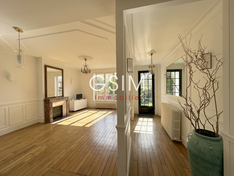 Idéal ASP et Ecole Allemande, à deux pas de la gare de Garches (280 m), des commerces et du centre ville, niché dans un petit chemin privé, maison de charme meublée de 150 m² (environ 170 m² au total), entièrement refaite à neuf avec beaucoup de goût et décoration très soignée, se composant : d'une entrée, d'un séjour salle à manger avec cuisine US équipée; au premier étage, d'une suite parentale avec salle de bains et wc, d'une seconde grande chambre avec penderies, avec salle de douches et wc; au second étage, de deux belles chambres dont une avec penderies, d'une salle de bains avec wc; au sous sol, d'un wc séparé, d'une salle de cinéma (ou grand bureau de 25 m²), d'une buanderie équipée, d'une chaufferie. Fibre. Produit très rare dans cet état.