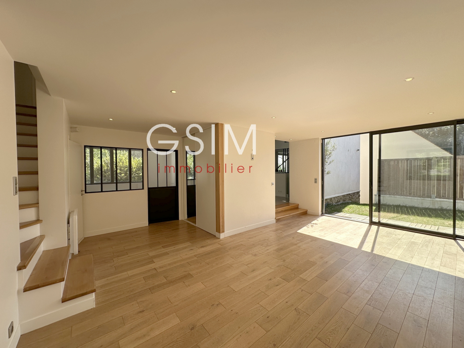 Au-dessus du centre-ville de Garches, non loin des commerces et des écoles, maison de 124 m² refaite entièrement dans un style contemporain, se composant : d'une cuisine ouverte semi équipée avec ilot, d'une salle à manger, d'un séjour ou family room, d'un étage parents avec chambre donnant sur une terrasse, d'un dressing, d'une salle de douches et d'un wc, de deux chambres, d'une salle de bains avec wc, d'un bureau, d'un garage, d'une buanderie. Jolie rénovation. fibre.
