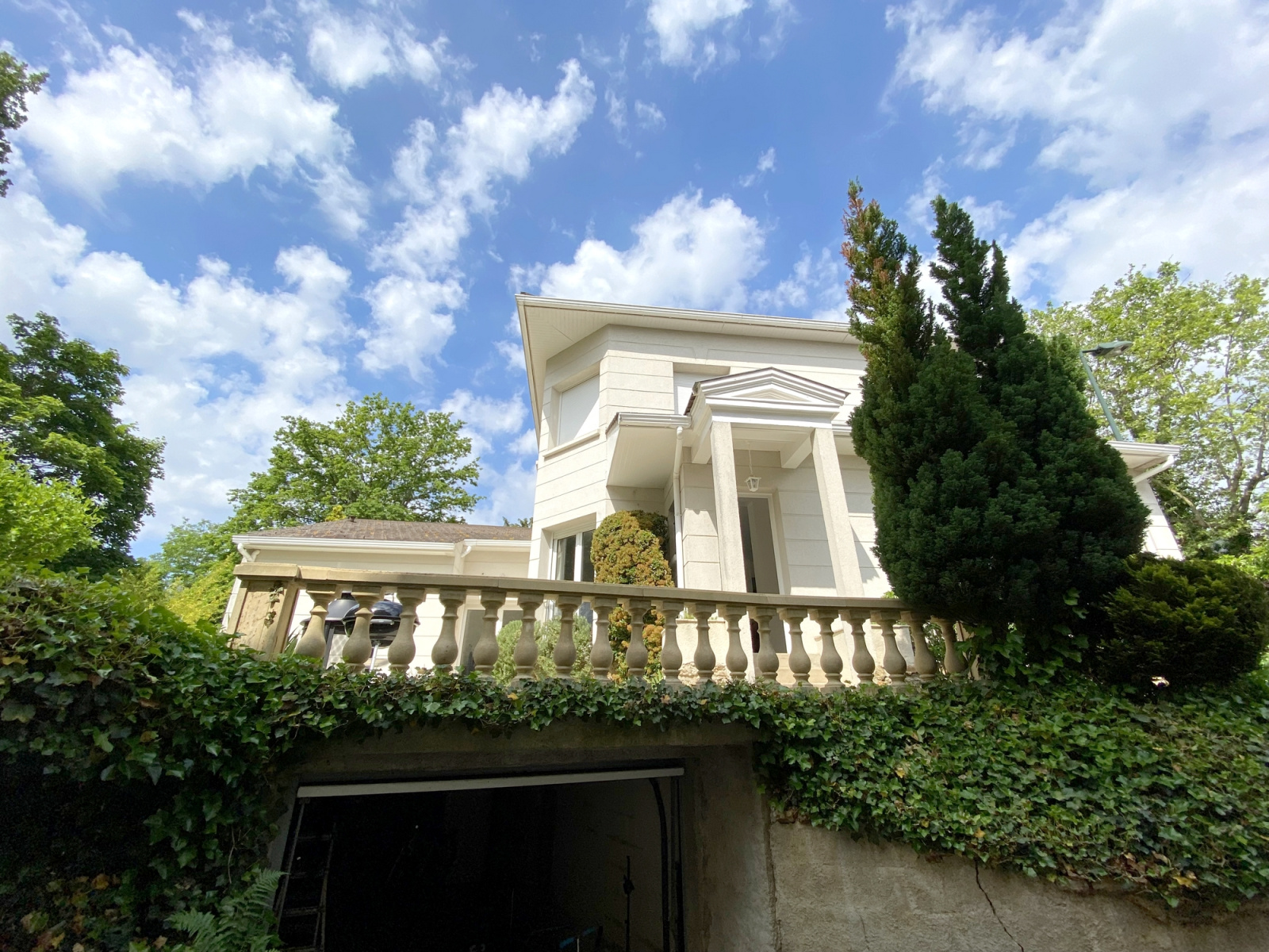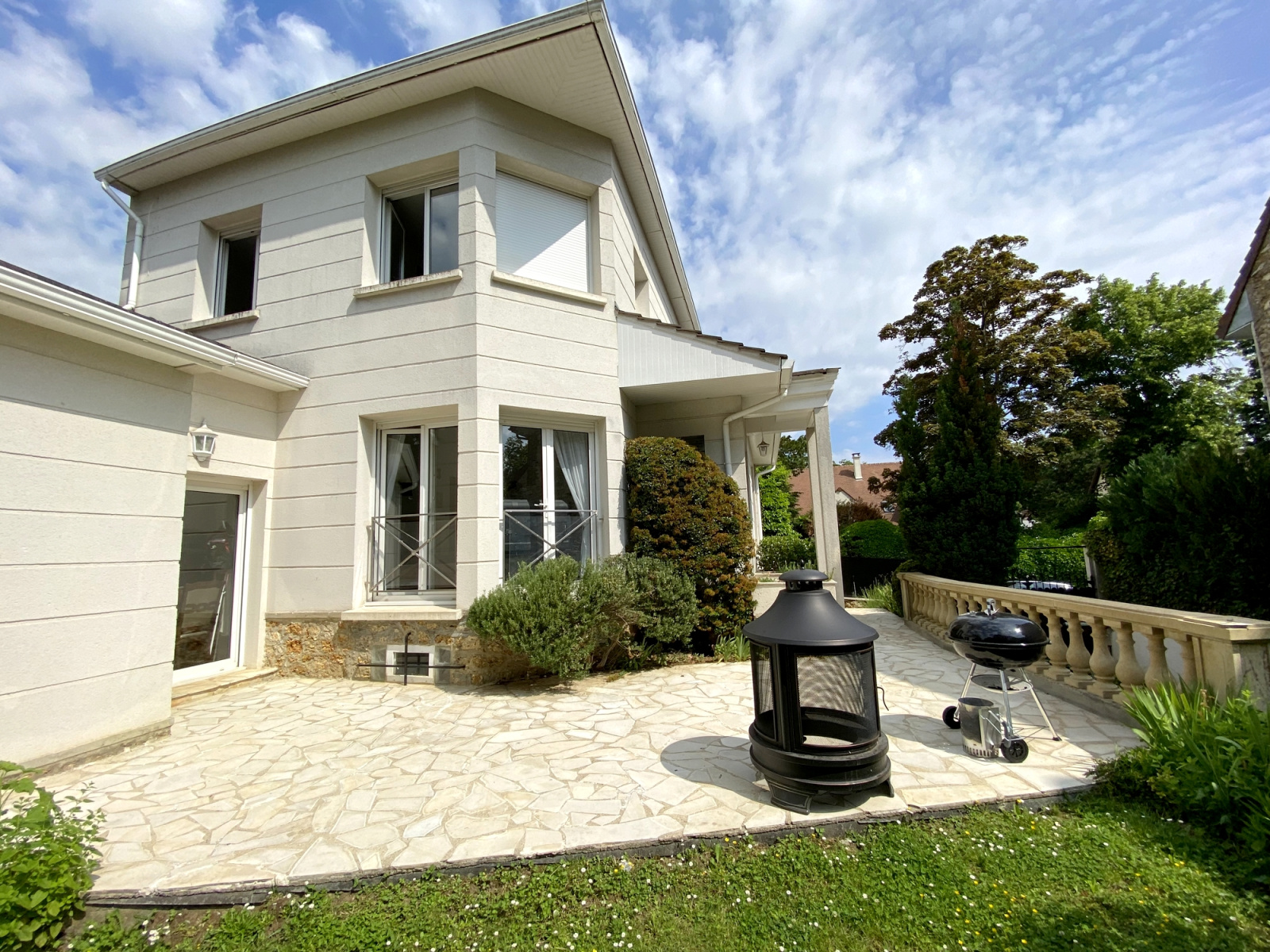 Proche du centre ville de Garches, de la gare et des commerces, Maison de 140 m² (170 m² habitables) avec jardin se composant: d'une entrée avec penderie, une cuisine équipée, un séjour avec cheminée, donnant sur une terrasse, 5 chambres, deux salles de bains, une salle de douches, 2 wc séparés, un sous sol avec cave/lingerie, cave à vins et garage.