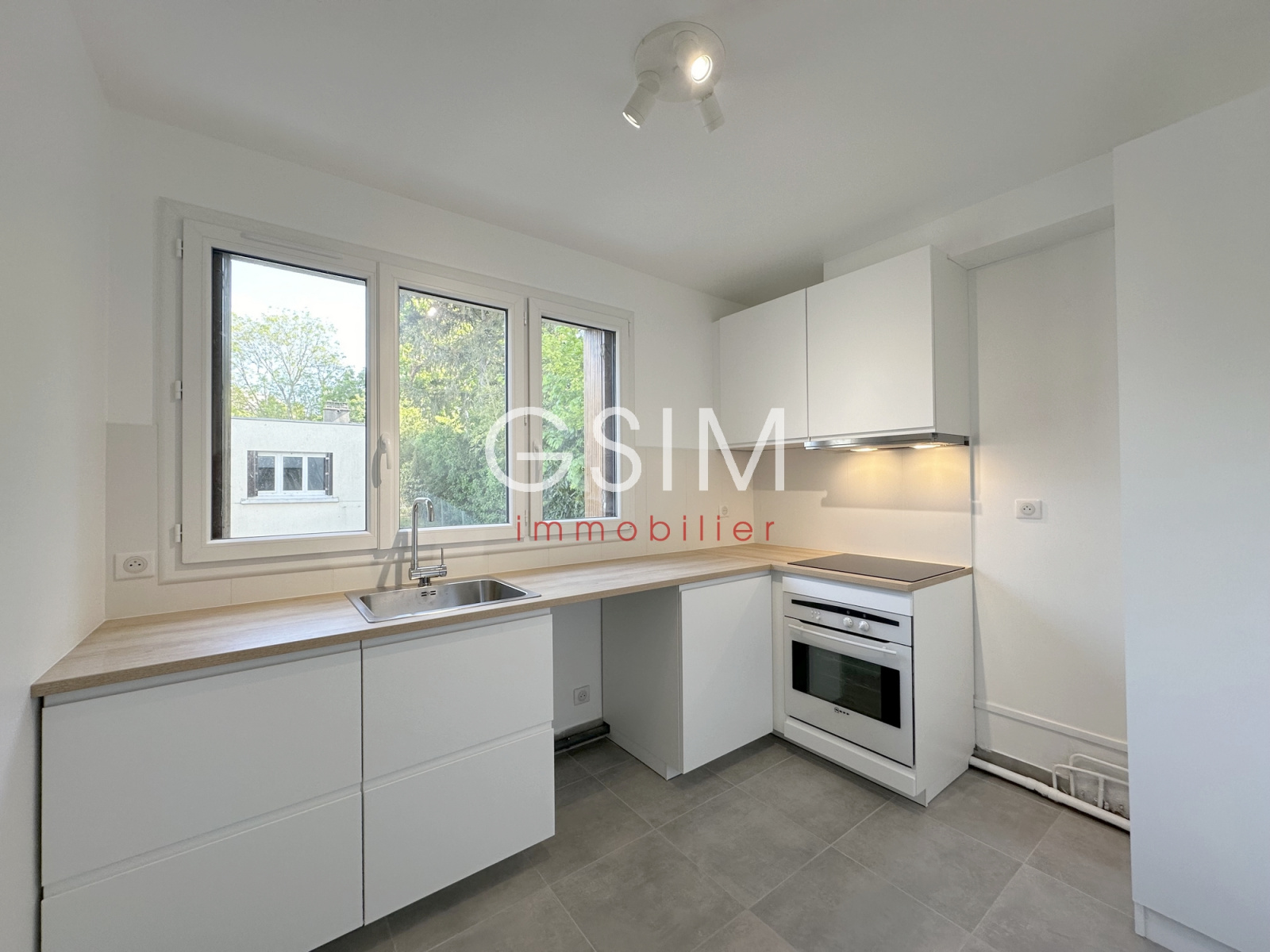 Porche du centre ville de Garches (rue Sylvain Vigneras), dans une petite copropriété, appartement au dernier étage, de 47 m², refait à neuf se composant : d'une entrée, d'un séjour avec balcon, d'une cuisine séparée semi équipée, d'une chambre avec placards, d'une salle de bains avec wc, d'une penderie dans le couloir, d'une cave.