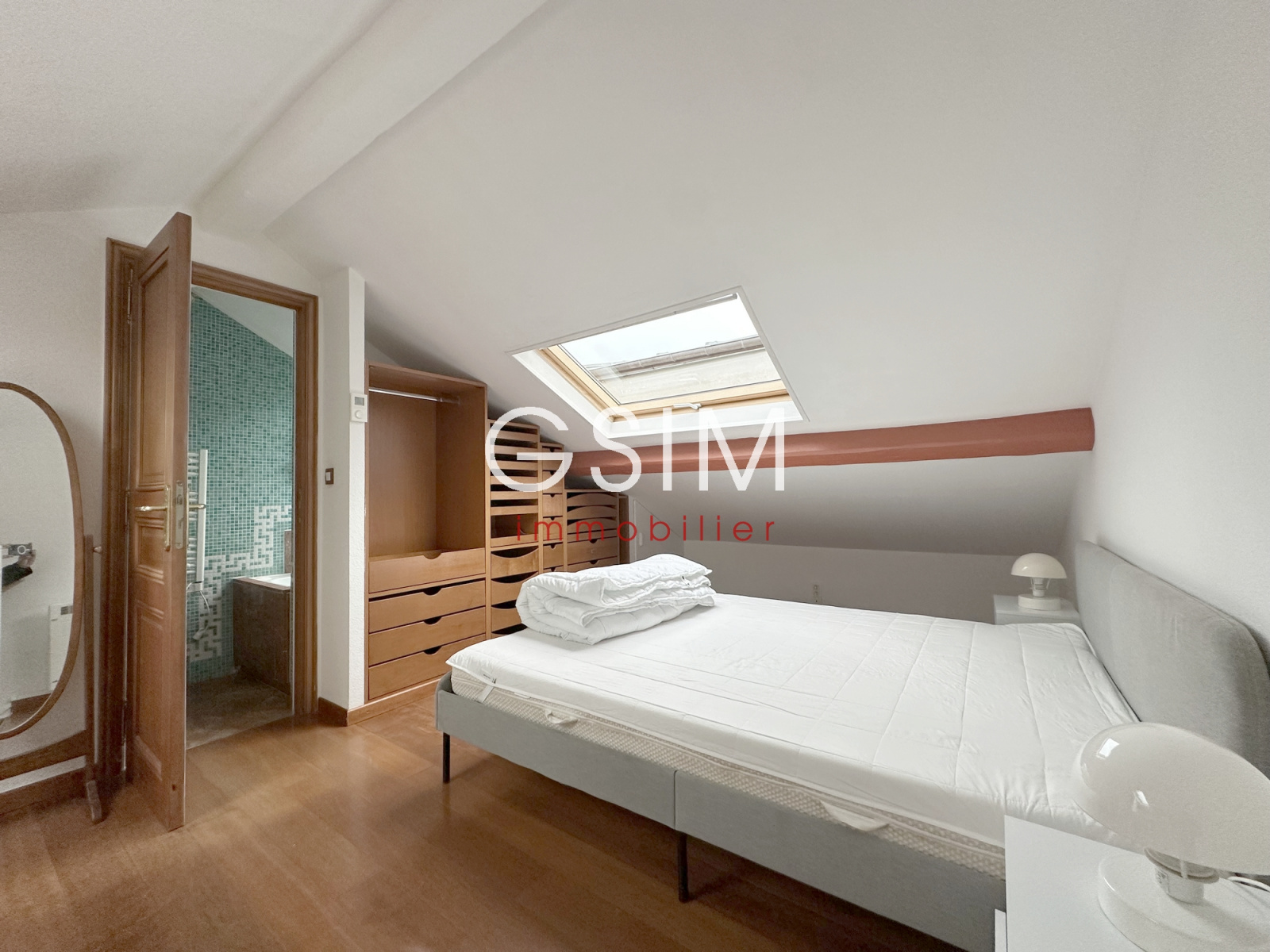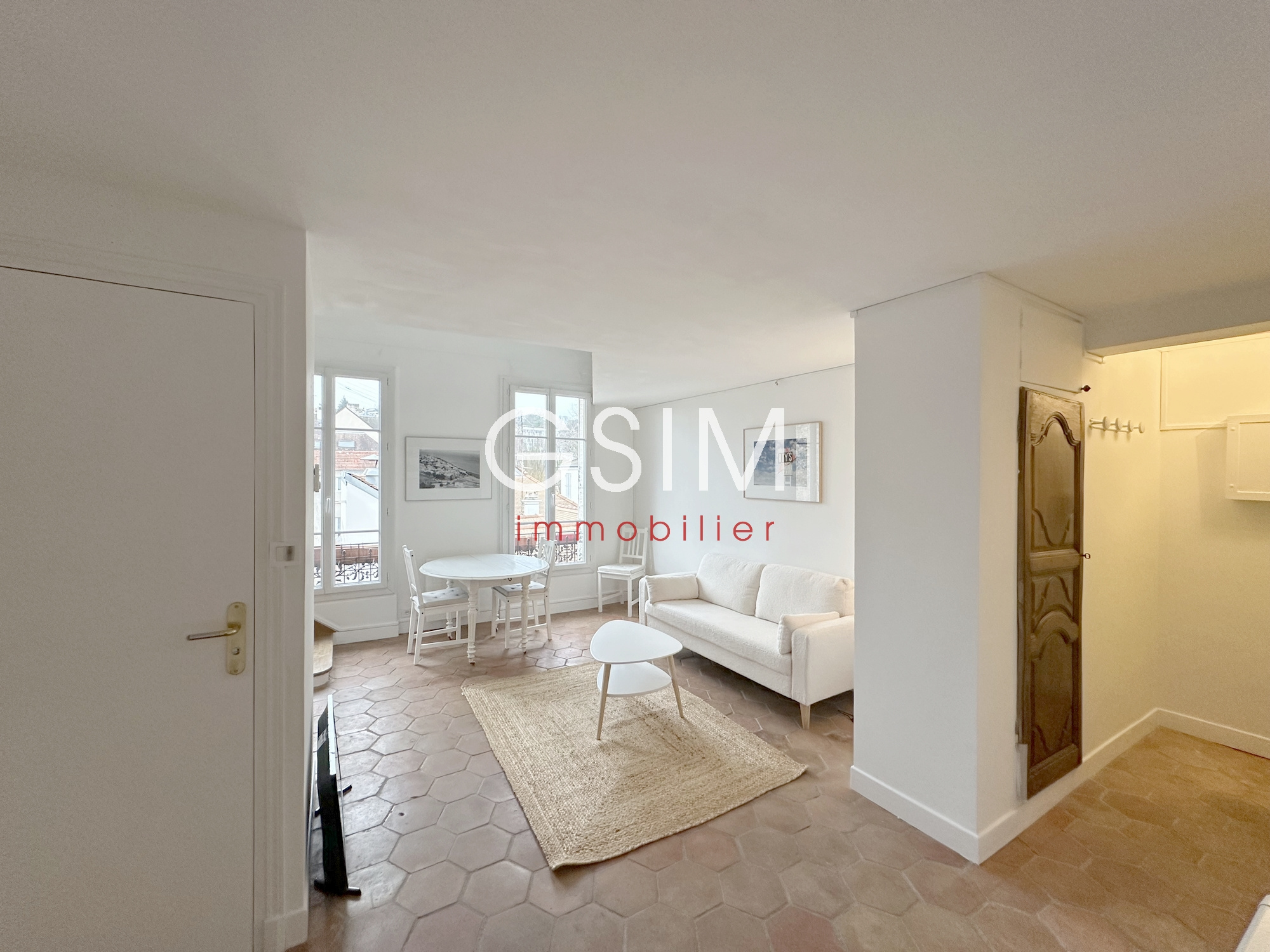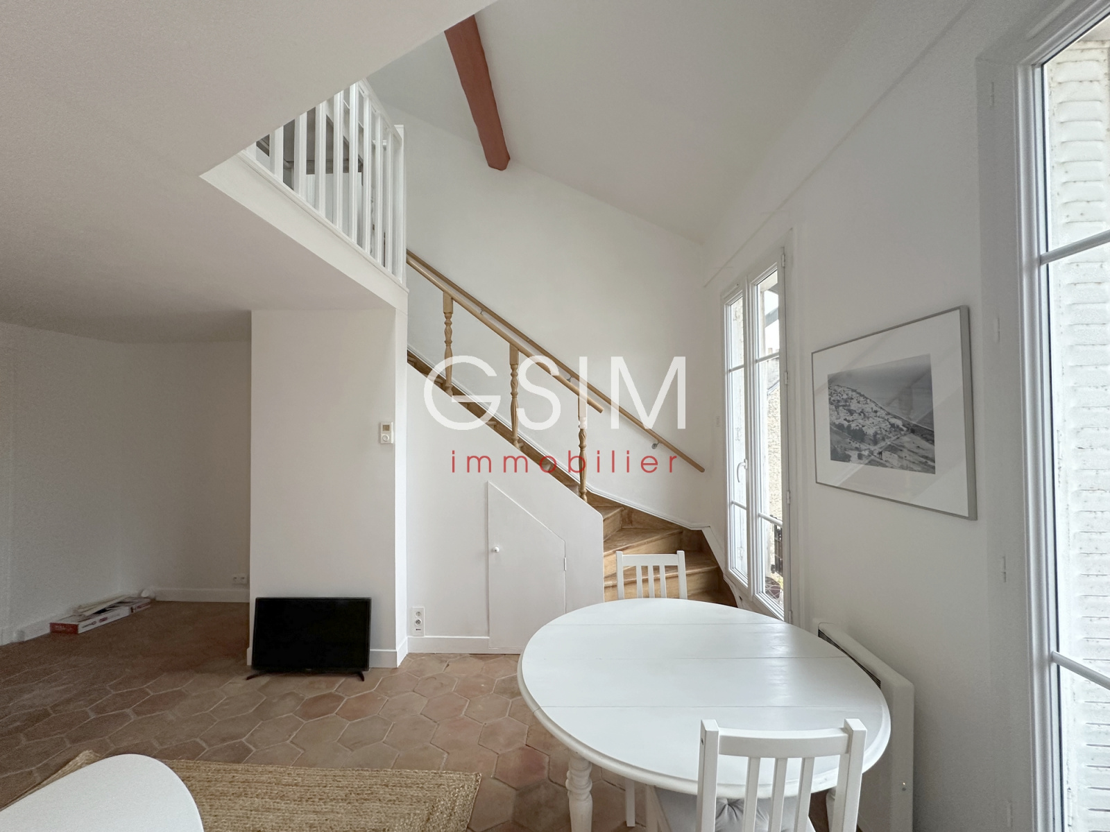 En plein coeur de Garches, à deux pas des commerces et non loin des transports, Duplex au dernier étage sans ascenseur d'un petit immeuble 1900, Meublé, de 32,51 m² (46,24 m² au total) se composant : d'un séjour, d'une cuisine séparée, d'une chambre, d'une salle de bains, d'un wc séparé, et d'une grande cave.