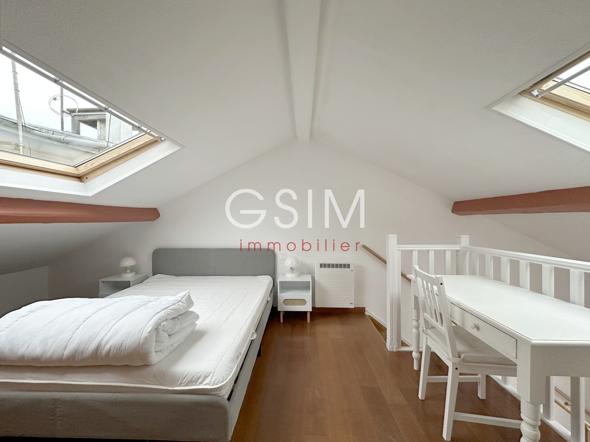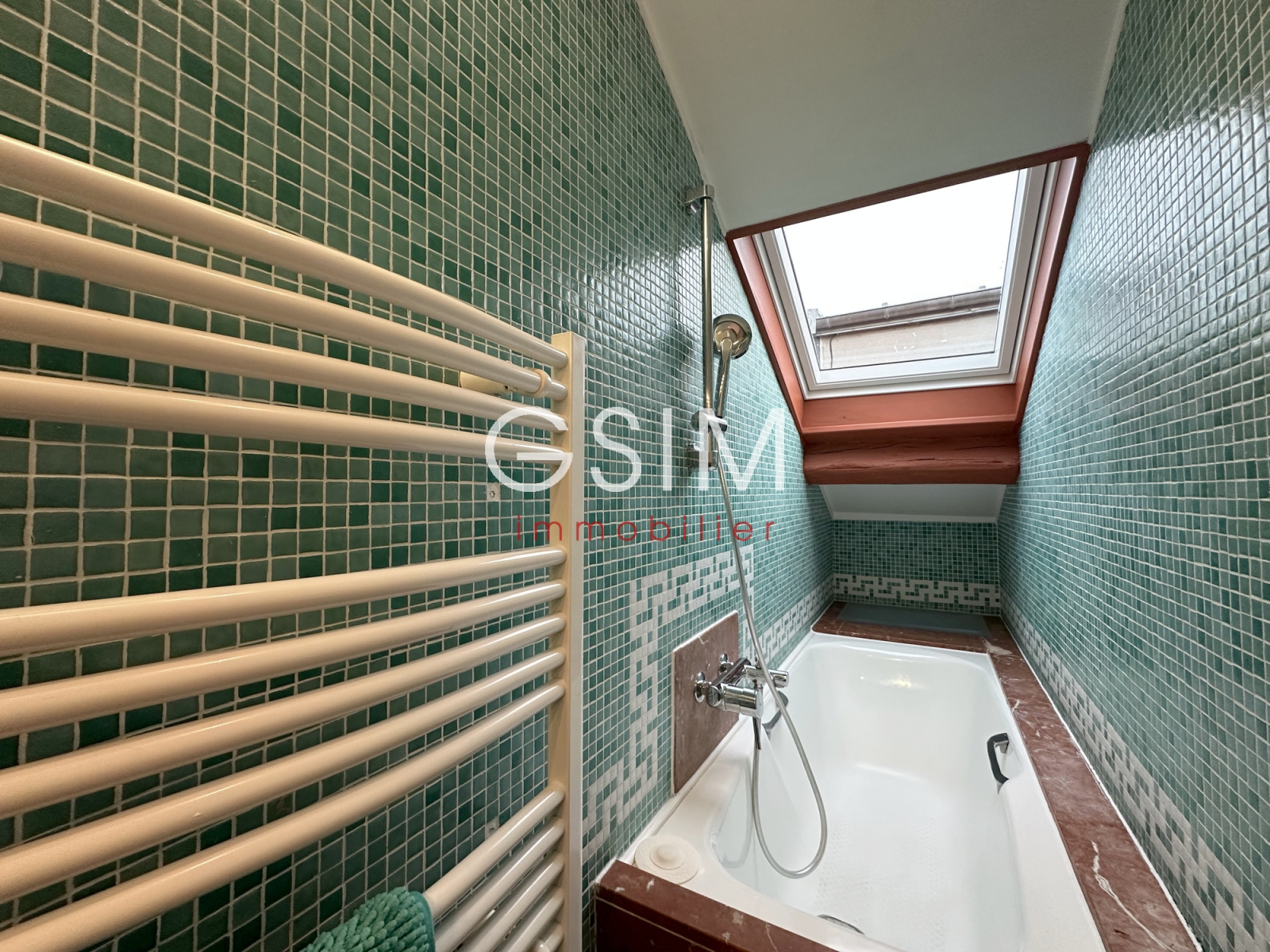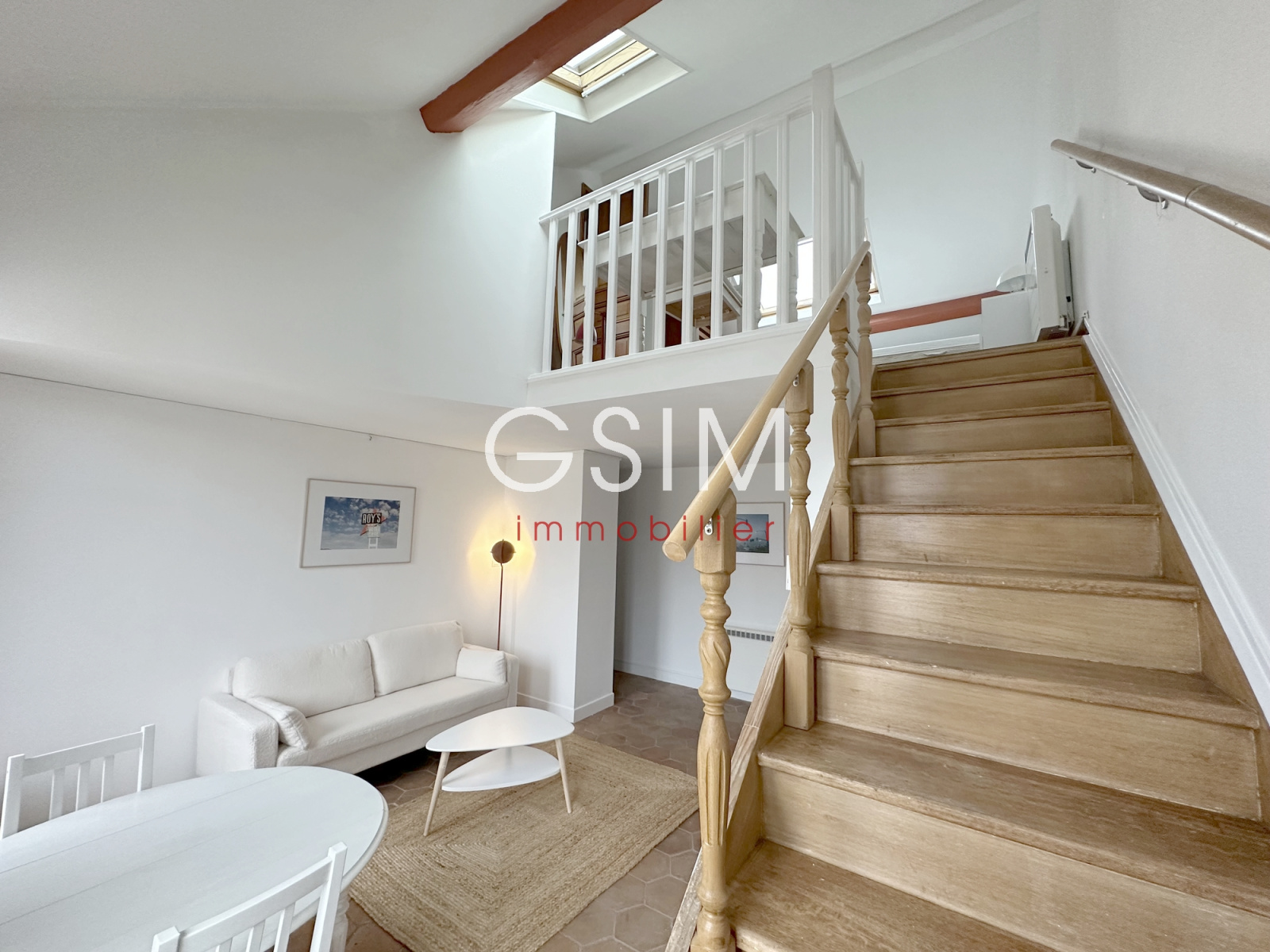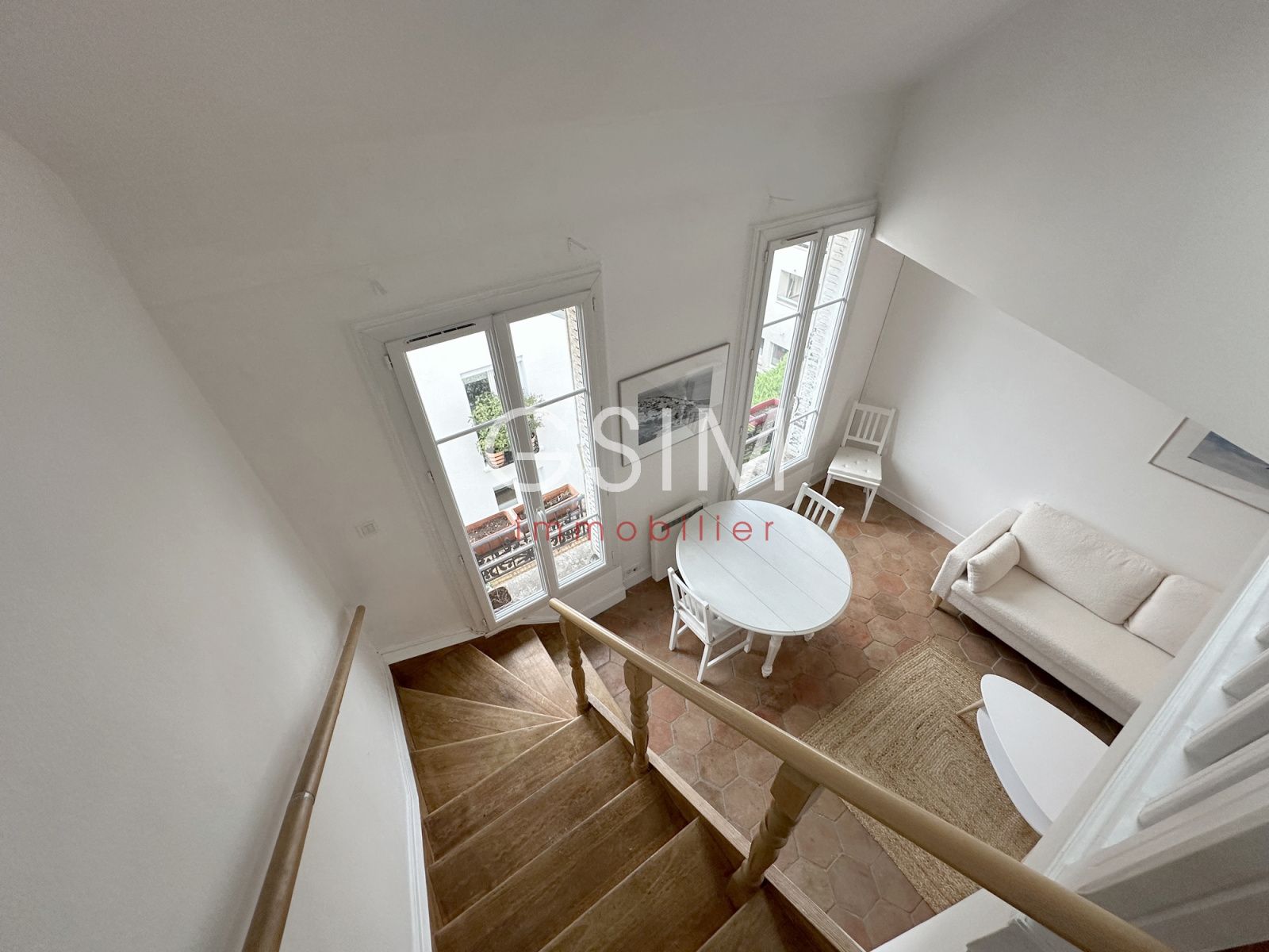 En plein coeur de Garches, à deux pas des commerces et non loin des transports, Duplex au dernier étage sans ascenseur d'un petit immeuble 1900, Meublé, de 32,51 m² (46,24 m² au total) se composant : d'un séjour, d'une cuisine séparée, d'une chambre, d'une salle de bains, d'un wc séparé, et d'une grande cave.