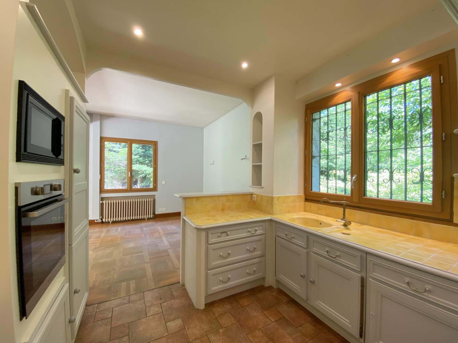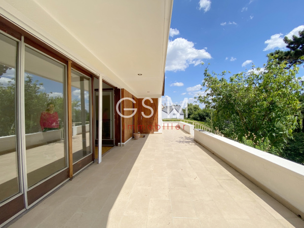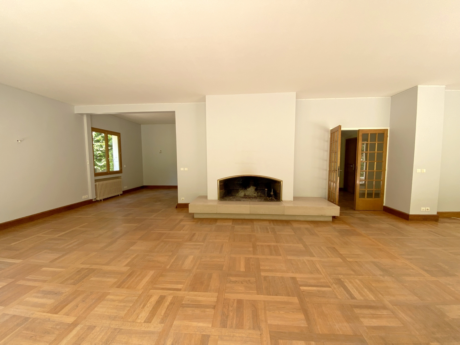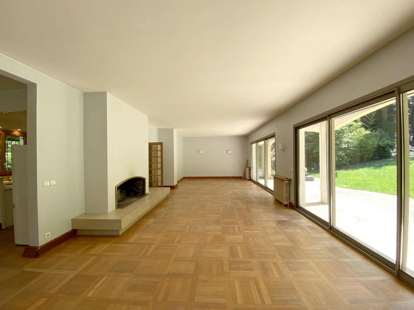 Proche du centre ville de Garches, non loin des commerces et de la gare, Maison des années 80, d'une superficie de 340 m² habitables, 476 m² au total sur un etrrain de 2200 m², se composant: au rez de chaussée, d'une grande entrée, d'un séjour de 59 m², avec coin salle à manger de 13 m² donnant sur la terrasse et le jardin, d'une cuisine semi équipée, d'une chambre de 25 m², d'une salle de douches avec wc, d'un dressing. Au premier étage, de trois grandes chambres dont deux avec salle de douches, une salle de bains, un dressing. Au Rez de jardin, un deux pièces avec salle de douches, un bureau de 19 m², une cave à vins, une chaufferie, une cave, un garage de 35 m².