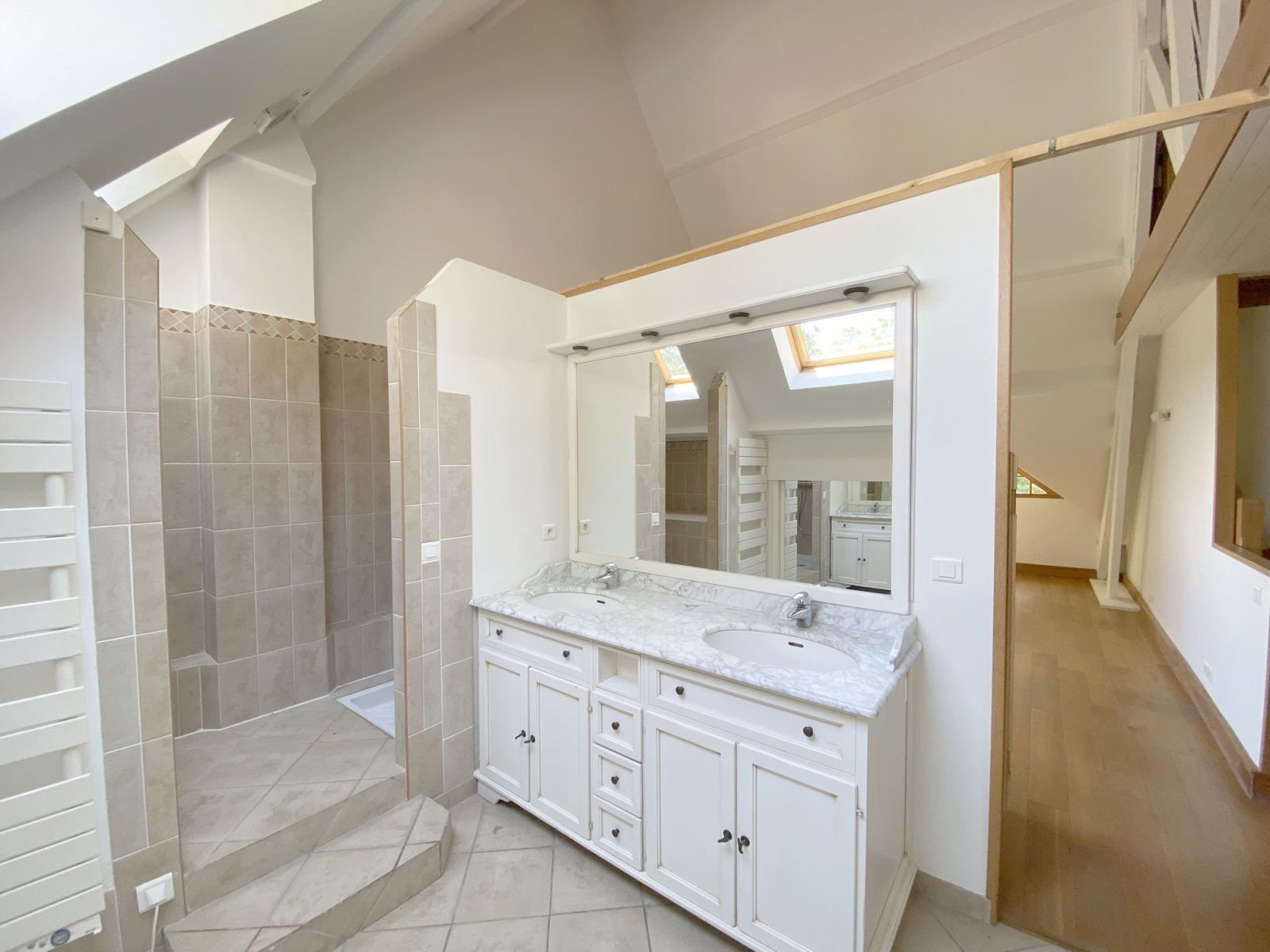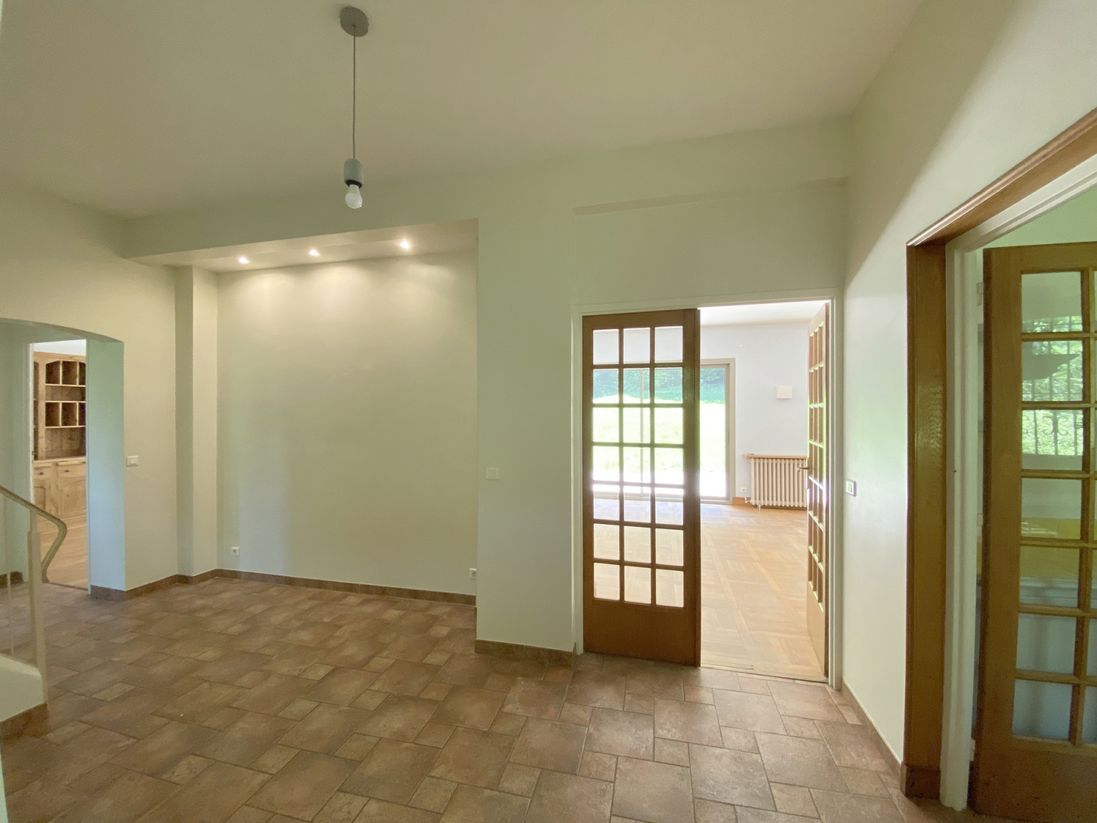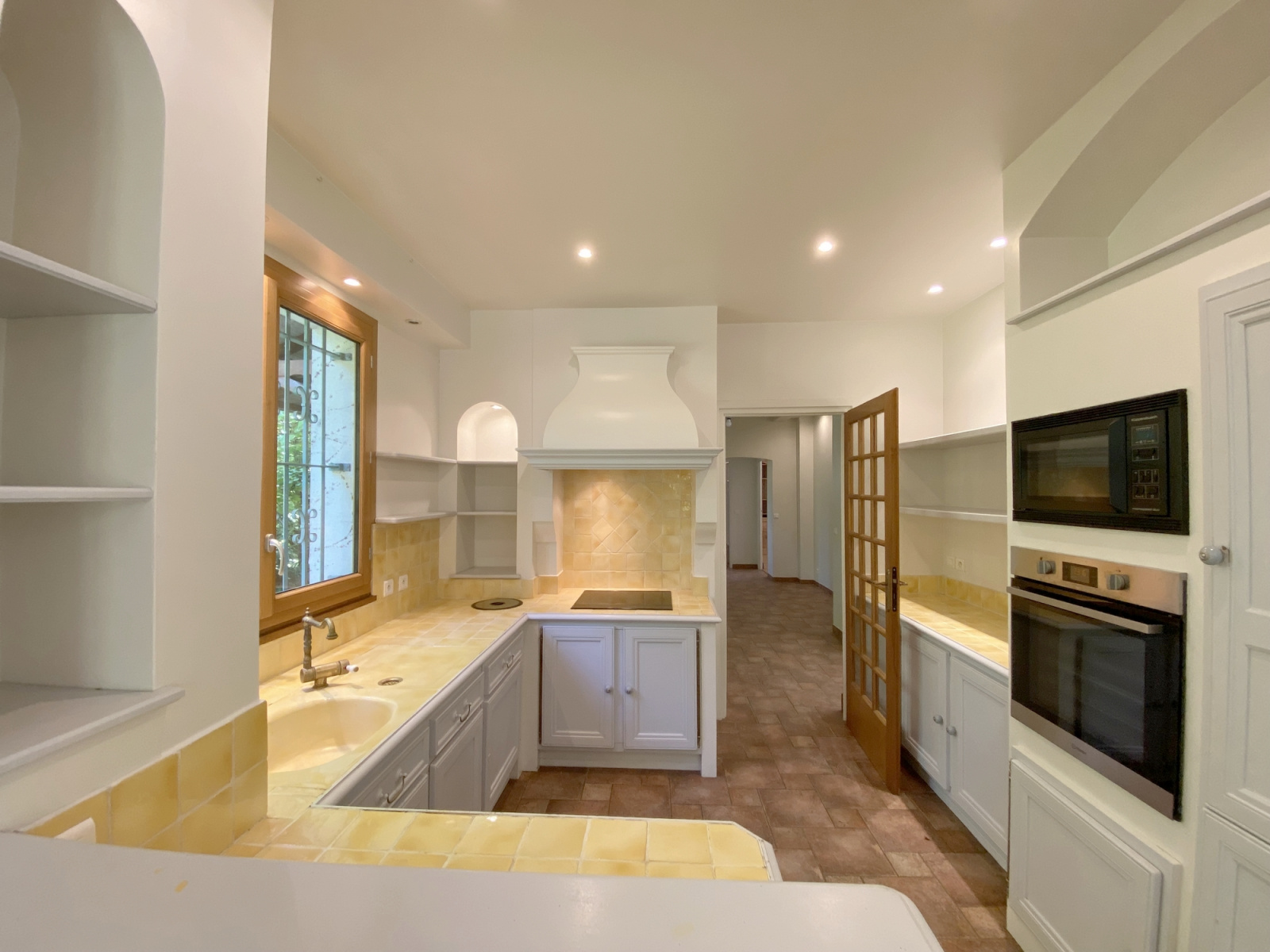 Proche du centre ville de Garches, non loin des commerces et de la gare, Maison des années 80, d'une superficie de 340 m² habitables, 476 m² au total sur un etrrain de 2200 m², se composant: au rez de chaussée, d'une grande entrée, d'un séjour de 59 m², avec coin salle à manger de 13 m² donnant sur la terrasse et le jardin, d'une cuisine semi équipée, d'une chambre de 25 m², d'une salle de douches avec wc, d'un dressing. Au premier étage, de trois grandes chambres dont deux avec salle de douches, une salle de bains, un dressing. Au Rez de jardin, un deux pièces avec salle de douches, un bureau de 19 m², une cave à vins, une chaufferie, une cave, un garage de 35 m².