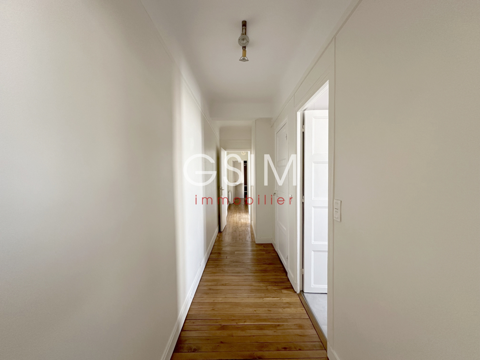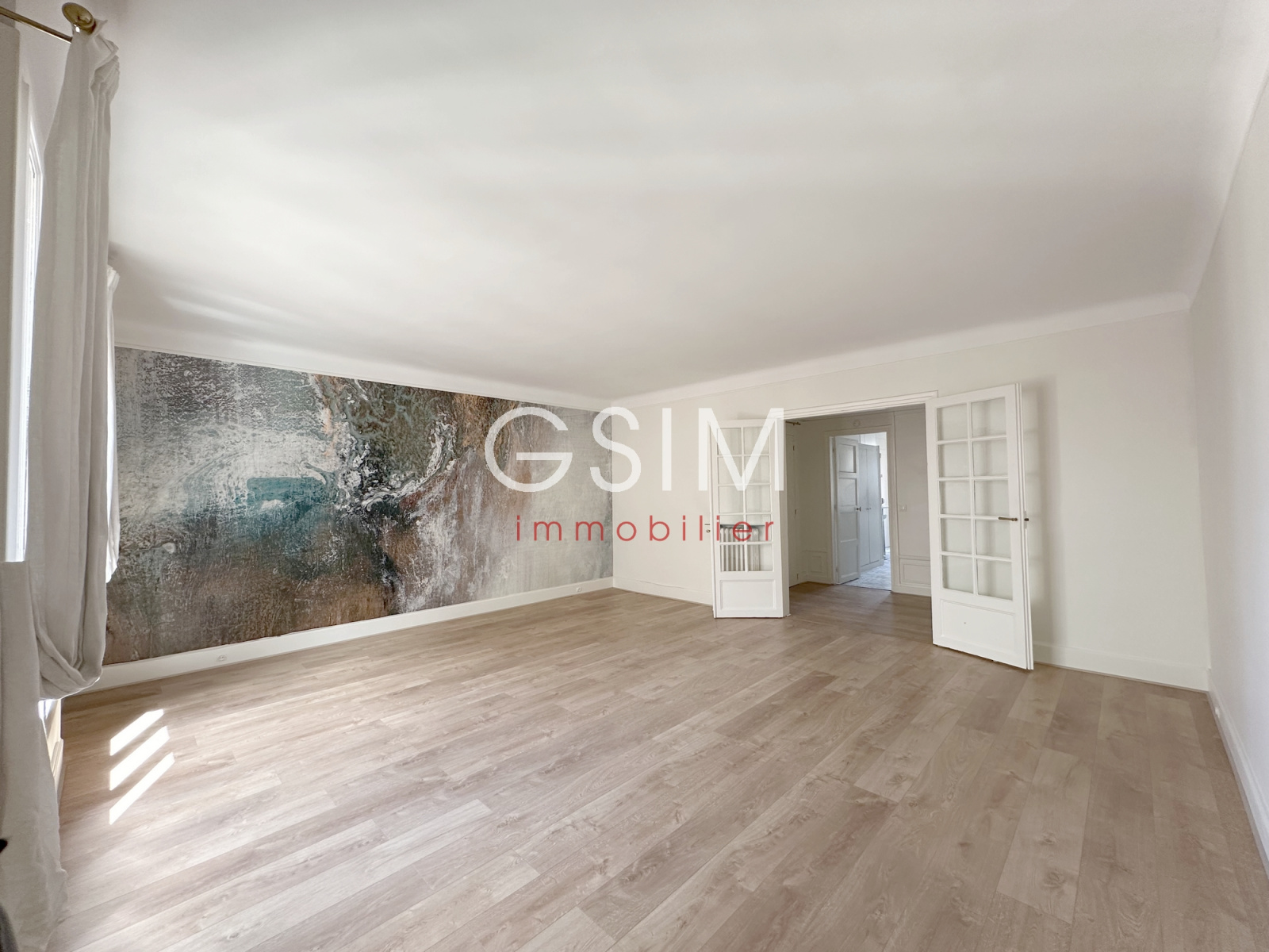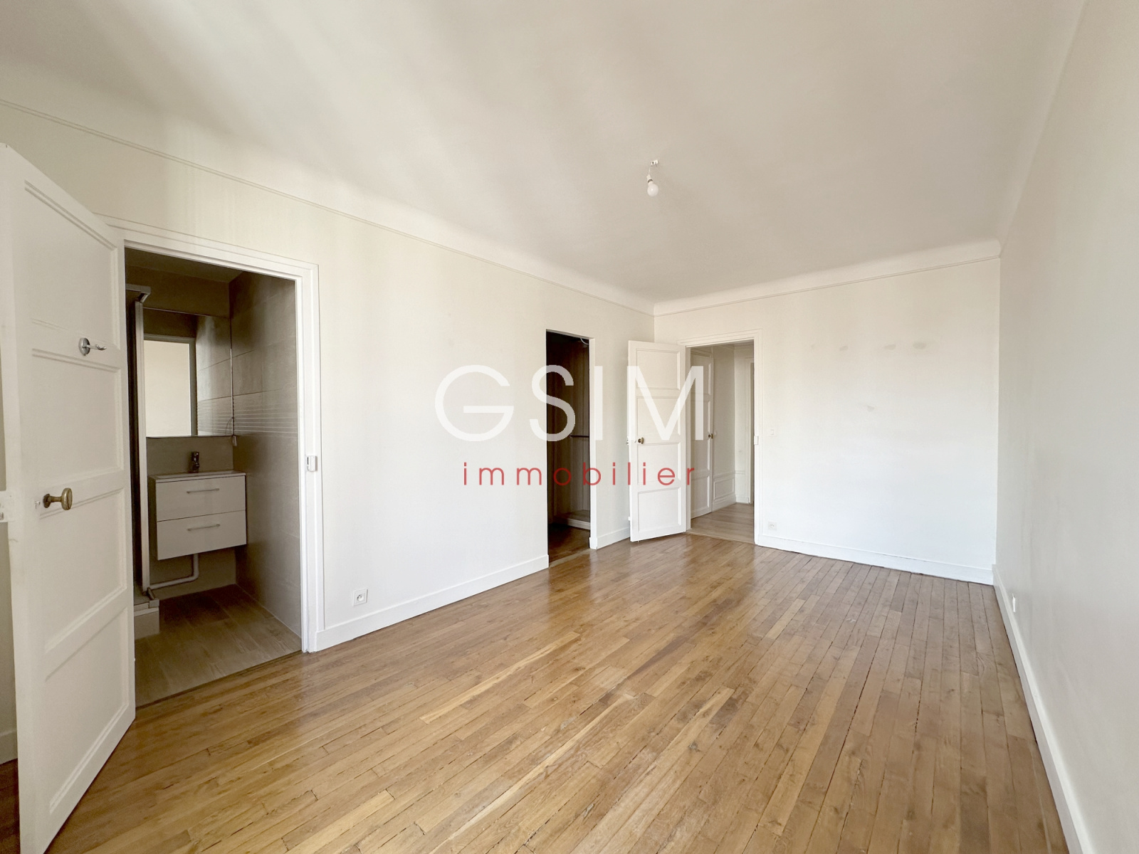 Dans une petite rue calme (rue Boutard), à deux pas du métro Pont de Neuilly, dans un immeuble 1930 avec gardienne, au 6 ème étage avec ascenseur, bel appartement de 130 m² se composant: d'une grande entrée avec dressing, d'un séjour double, d'une cuisine séparée équipée, d'une chambre avec dressing et salle de douches avec wc, d'une seconde chambre avec coin bureau (ou deux bureaux), d'un couloir avec troisième dressing, d'un wc séparé, d'une salle de bains avec baignoire et douche, et au fond d'une troisième chambre avec penderies. Une cave. Fibre.