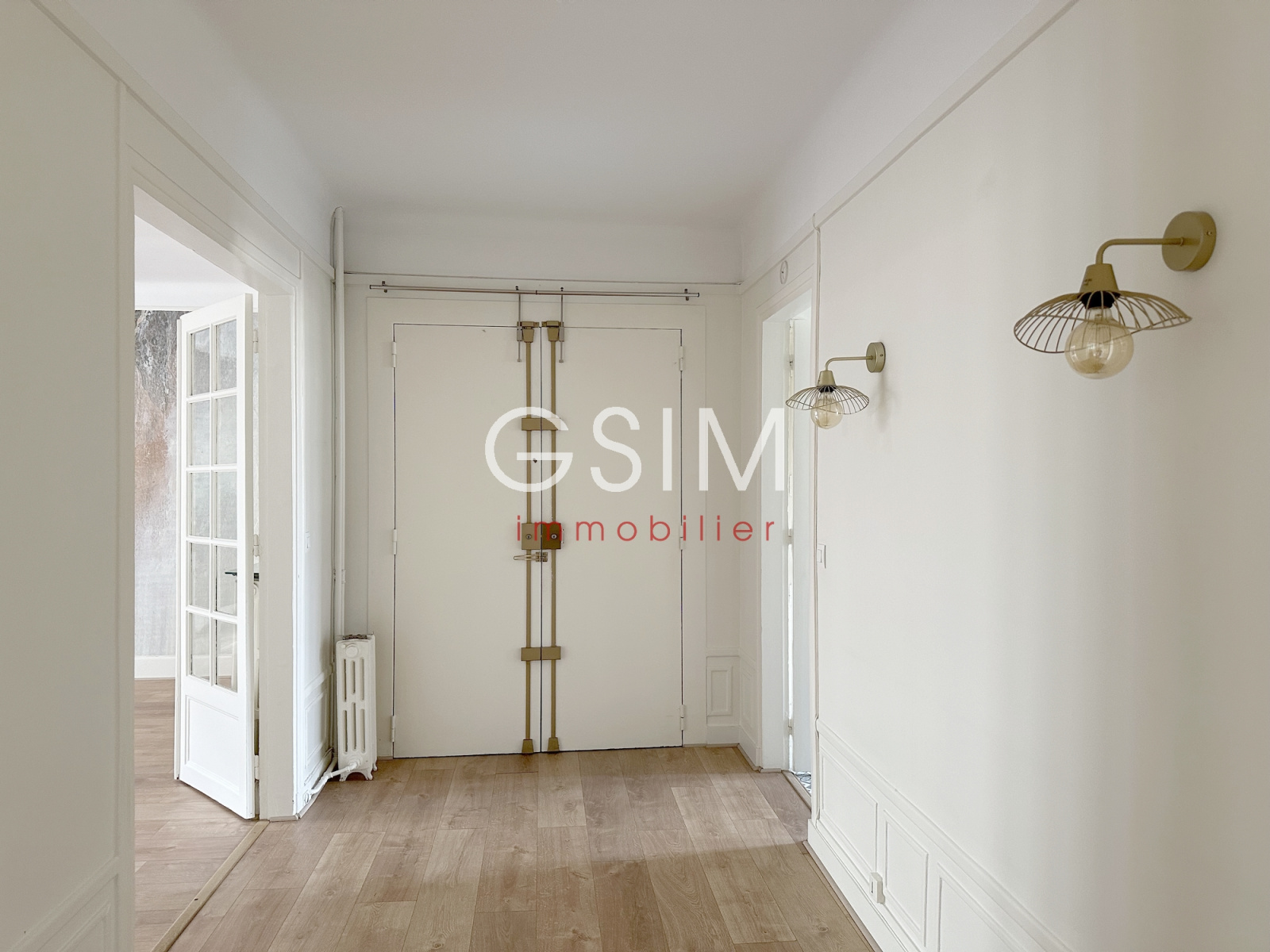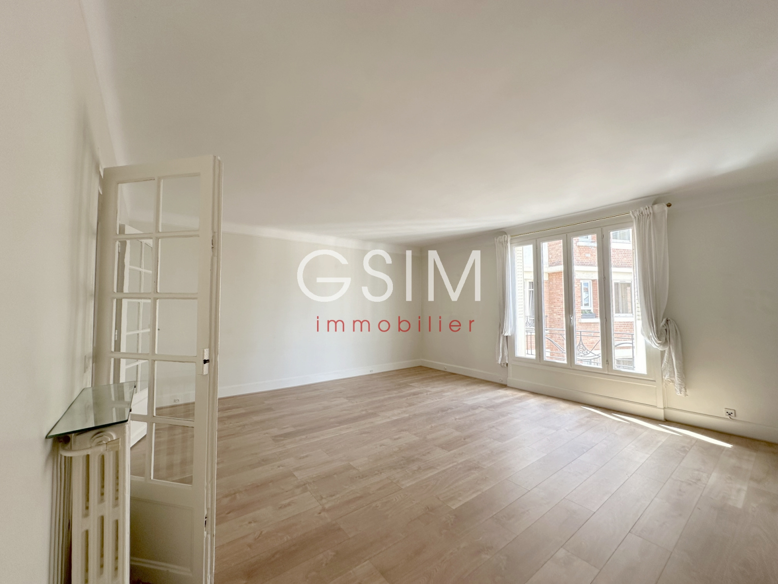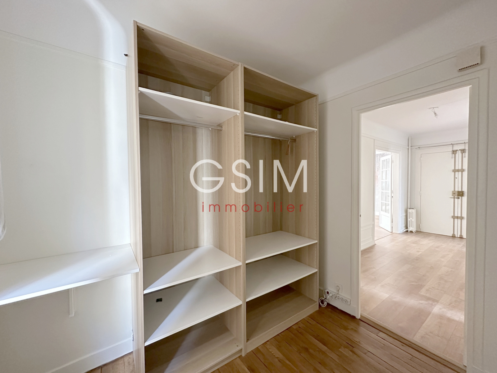 Dans une petite rue calme (rue Boutard), à deux pas du métro Pont de Neuilly, dans un immeuble 1930 avec gardienne, au 6 ème étage avec ascenseur, bel appartement de 130 m² se composant: d'une grande entrée avec dressing, d'un séjour double, d'une cuisine séparée équipée, d'une chambre avec dressing et salle de douches avec wc, d'une seconde chambre avec coin bureau (ou deux bureaux), d'un couloir avec troisième dressing, d'un wc séparé, d'une salle de bains avec baignoire et douche, et au fond d'une troisième chambre avec penderies. Une cave. Fibre.