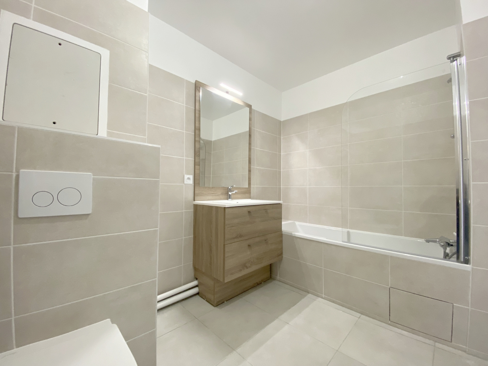 Rue des Monts, Immeuble Neuf, 2 Pièces de 38 m² se composant: d'une entrée/cuisine semi équipée, d'un séjour et d'une chambre avec balcon, d'une salle de bains avec wc, d'un parking sous sol.