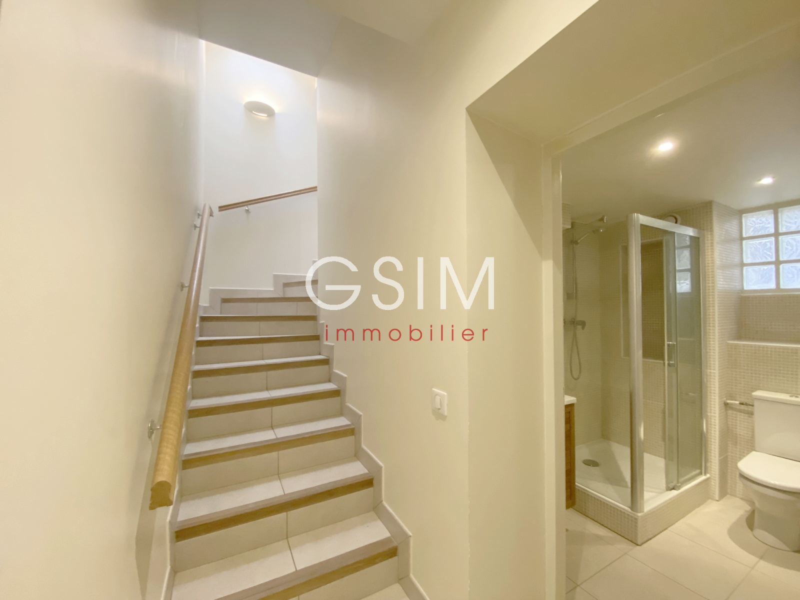 En plein coeur du village de Marnes la Coquette, à deux pas du parc de Saint Cloud et de la place de la mairie, appartement (comme une maison de ville avec entrée indépendante) en duplex de 106 m² se composant: au premier niveau, d'une entrée avec penderie, d'un séjour double en L donnant sur une terrasse, d'une cuisine séparée équipée, d'une suite parentale avec salle de bains, d'une salle de douches et d'un dressing, d'un wc séparé. A l'étage inférieur, de deux chambres avec penderies sur patio, et d'une salle de douches avec wc.