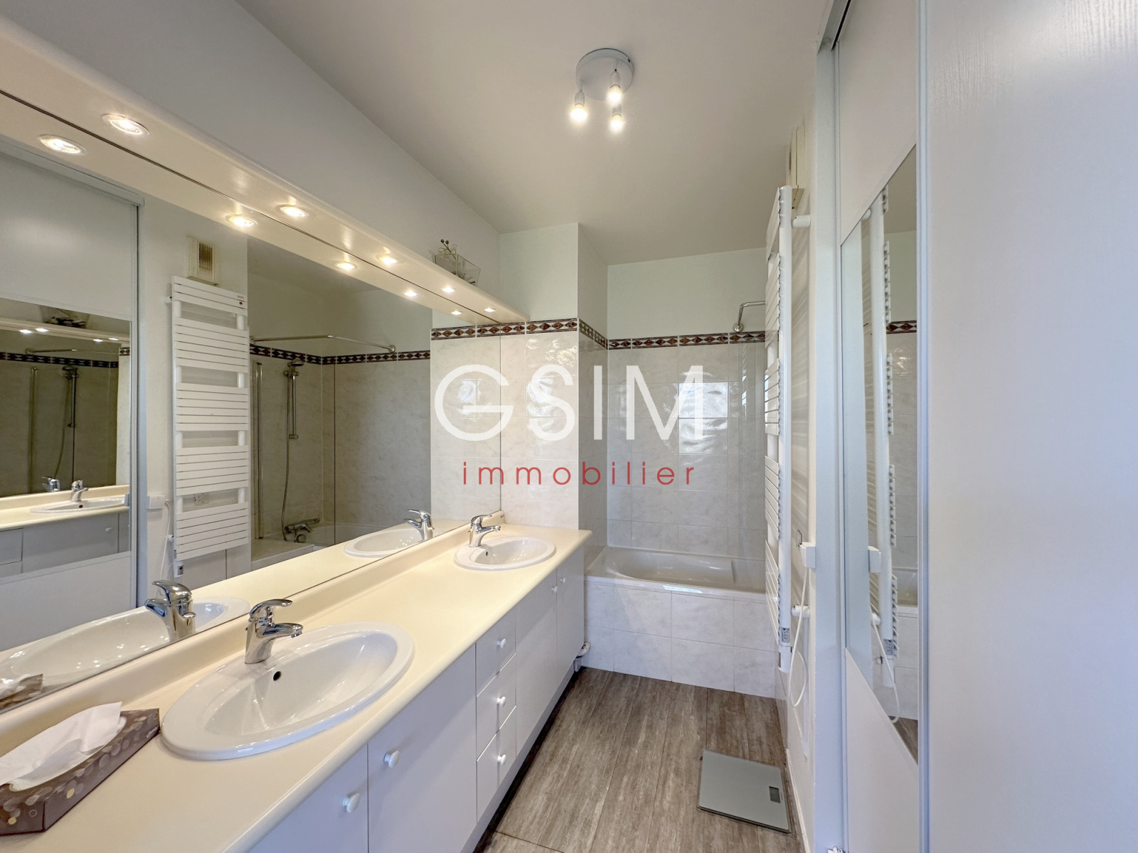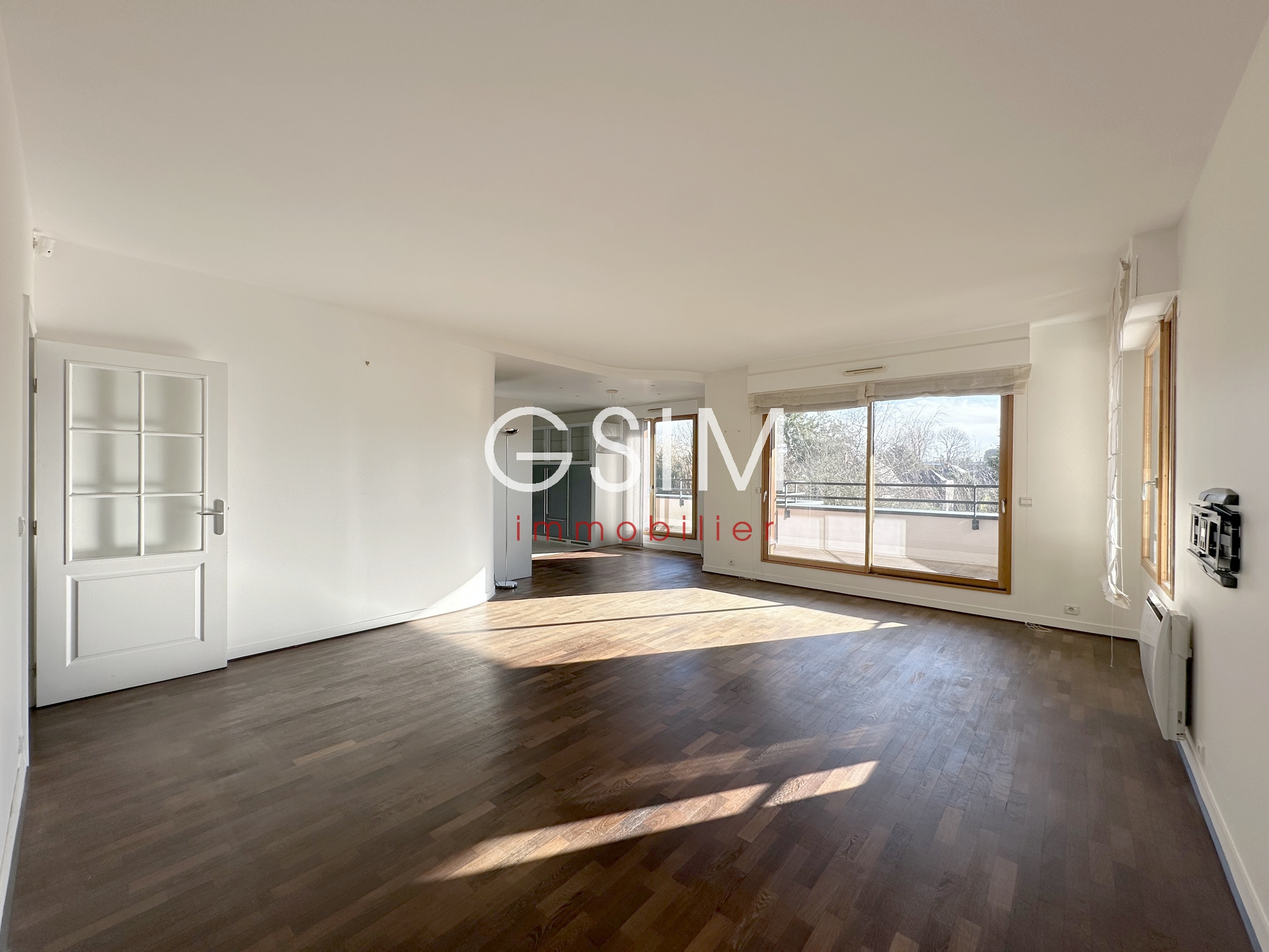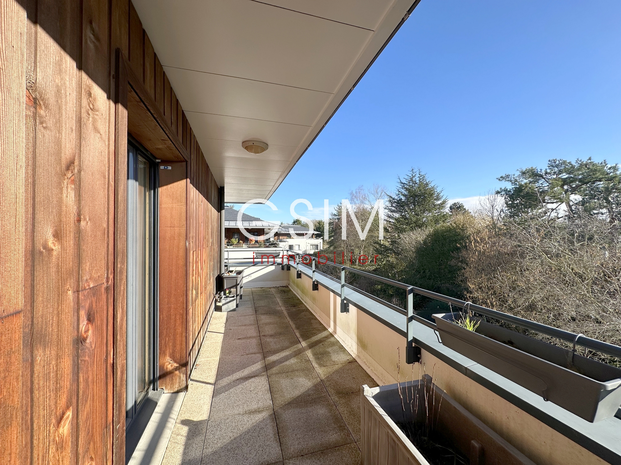 Dans une résidence de standing, sécurisée, proche de la forêt, au dernier étage avec balcons/terrasse de 50 m², appartement de 100 m² se composant: d'une entrée avec penderie, d'un séjour double sur terrasse, d'une cuisine US équipée avec salle à manger, de deux chambres, d'une salle de bains, d'une salle de douches avec wc, d'un wc séparé, d'une cave et de deux parkings sous sol.