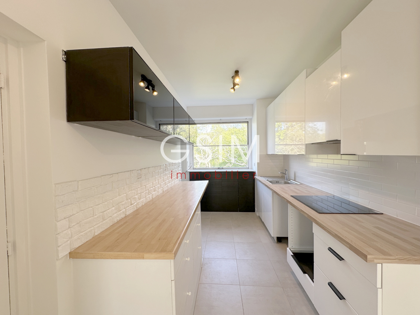 Proche centre ville, commerces et écoles, dans une résidence avec gardin et grands espaces verts, au dernier étage avec ascenseur, beau 4 pièces refait de 109 m² se composant: d'une grande entrée avec penderies, d'une cuisine semi équipée avec office, d'un séjour avec balcon de 6 m², de trois grandes chambres (16, 17 et 18 m²), d'une salle de bains, d'un wc séparé, d'une cave et d'un parking extérieur privatif.