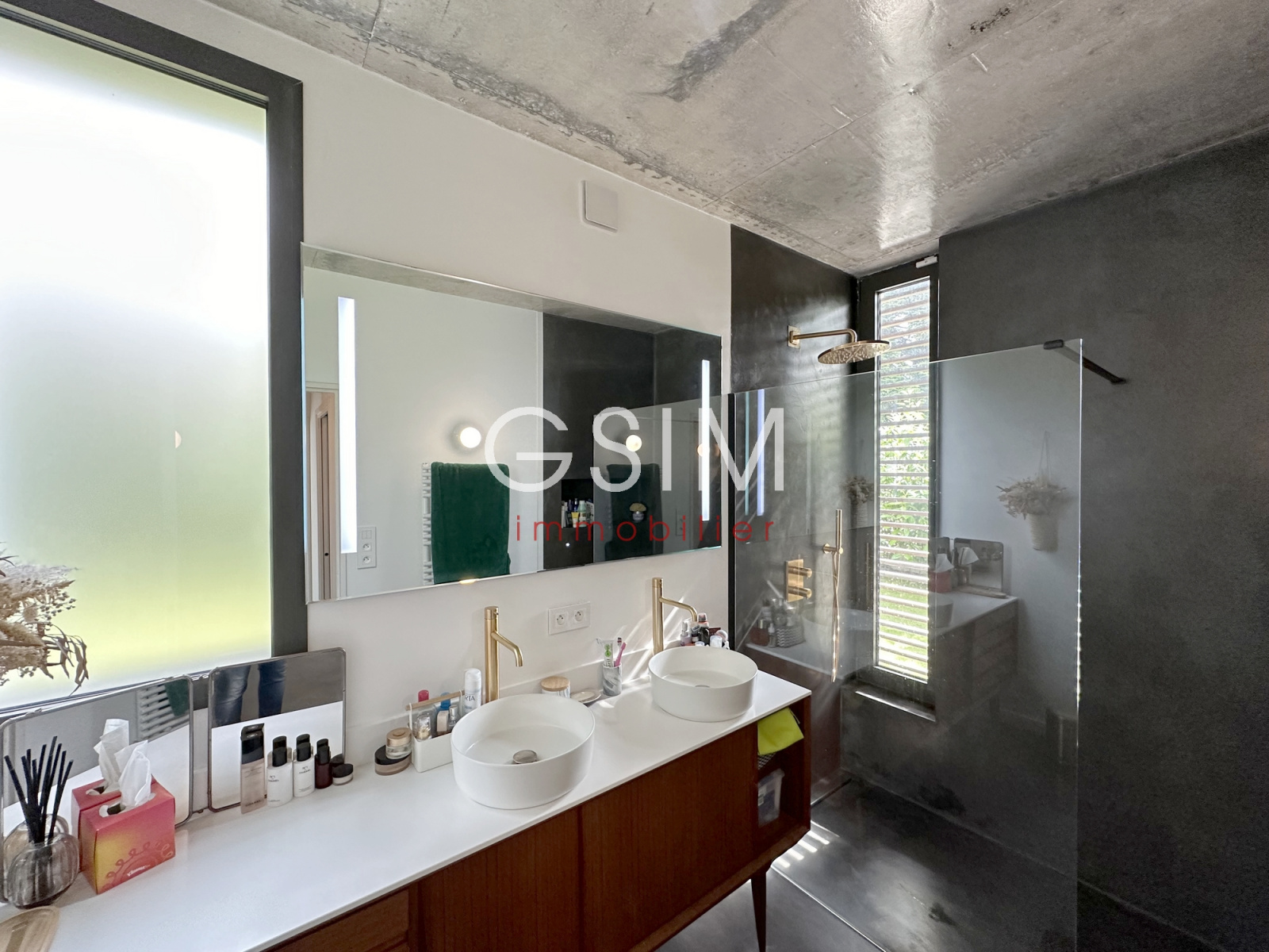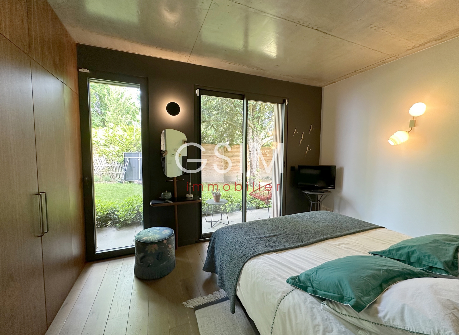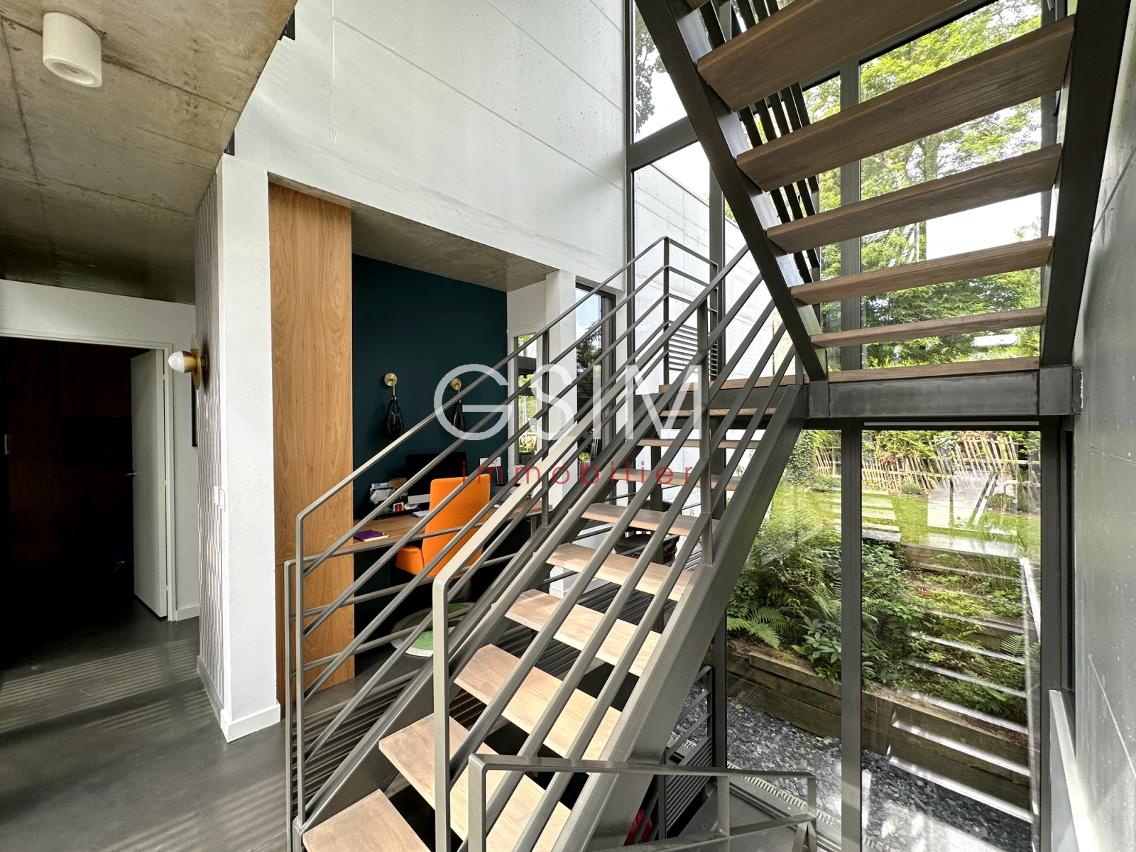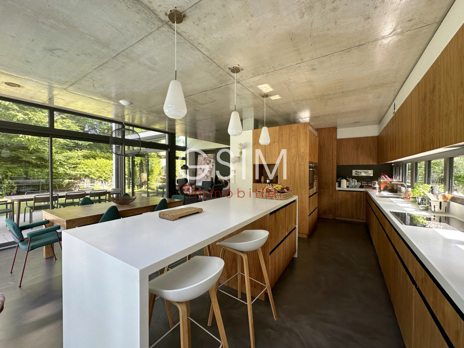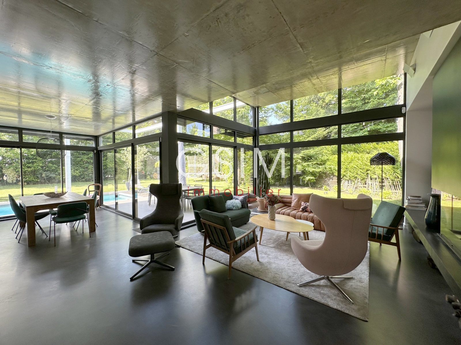Au rez de chaussée, d'une entrée avec dressing, séjour double avec cheminée et grandes baies vitrées sur jardin, salle à manger et cuisine US équipée avec vue sur la piscine, d'un petit espace bureau, d'une suite parentale avec chambre, deux dressings, une salle de douches, et un wc.