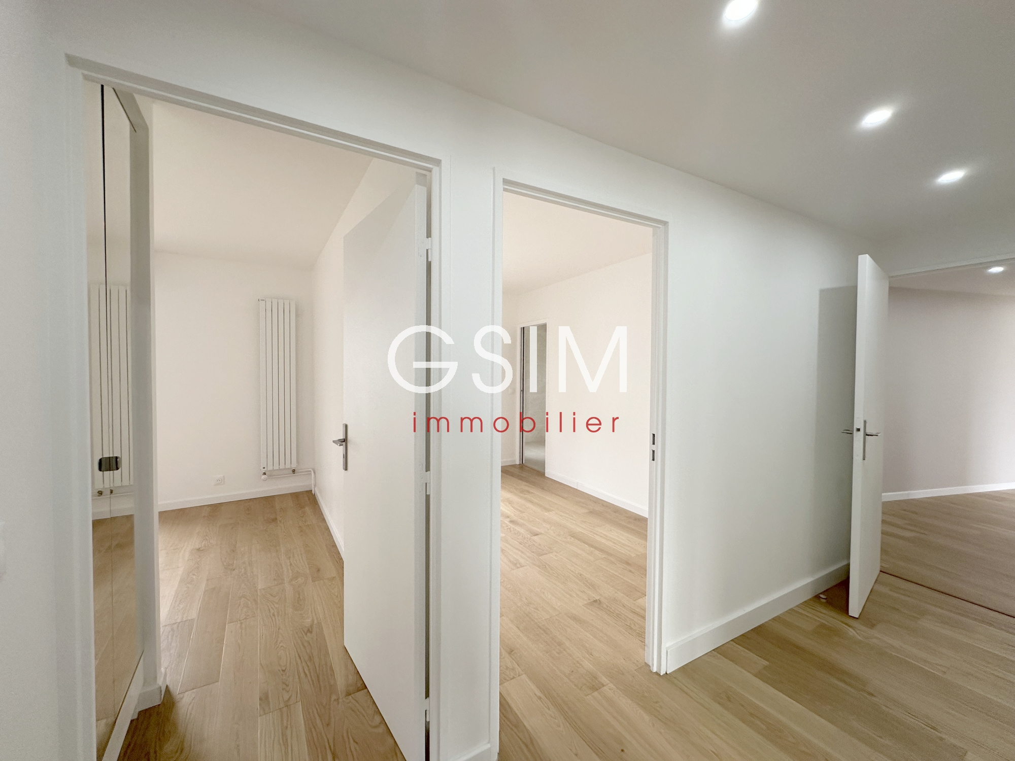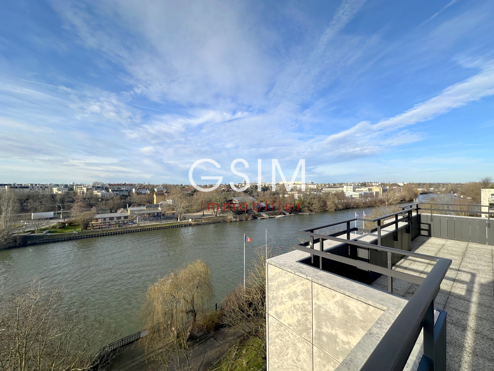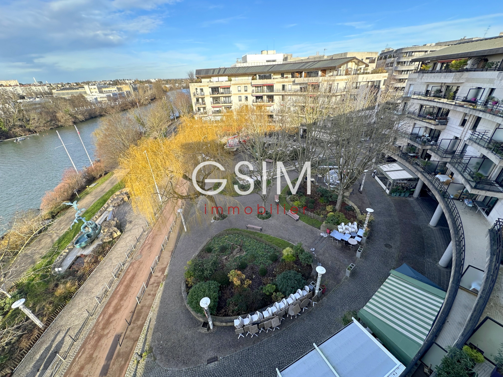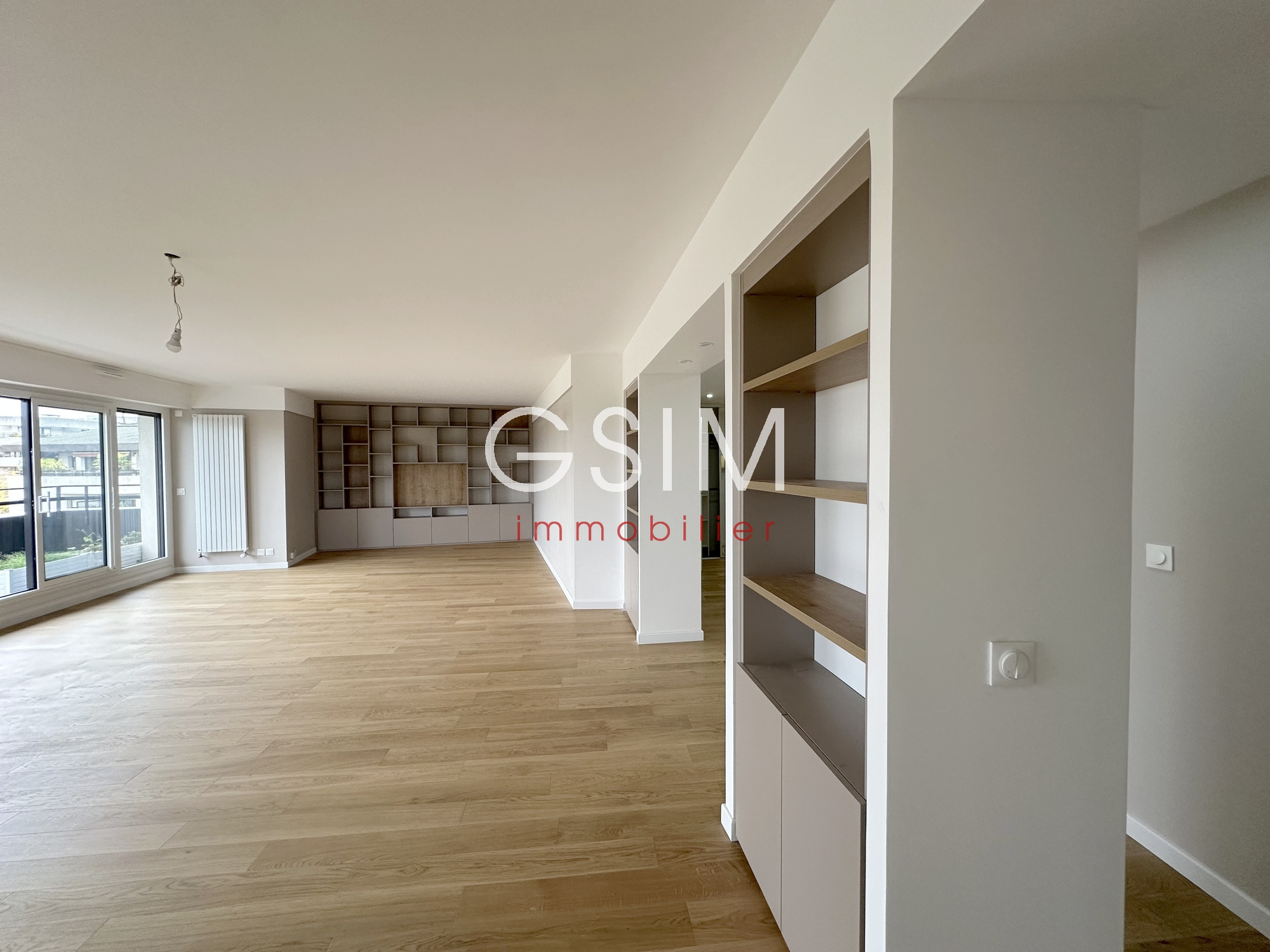 Place des Impressionnistes, au dernier étage avec Terrasses (vue sur la Seine, l'île des Impressionnistes, et le pont de Chatou), très bel appartement entièrement refait de 113 m² se composant : d'une entrée avec penderies, d'un séjour double de 43 m², d'une cuisine US équipée, d'une chambre avec salle de bains avec baignoire et douche, d'une chambre avec penderie et salle de douches, d'une troisième chambre avec salle de douches. Une cave et un parking sous-sol. Fibre.