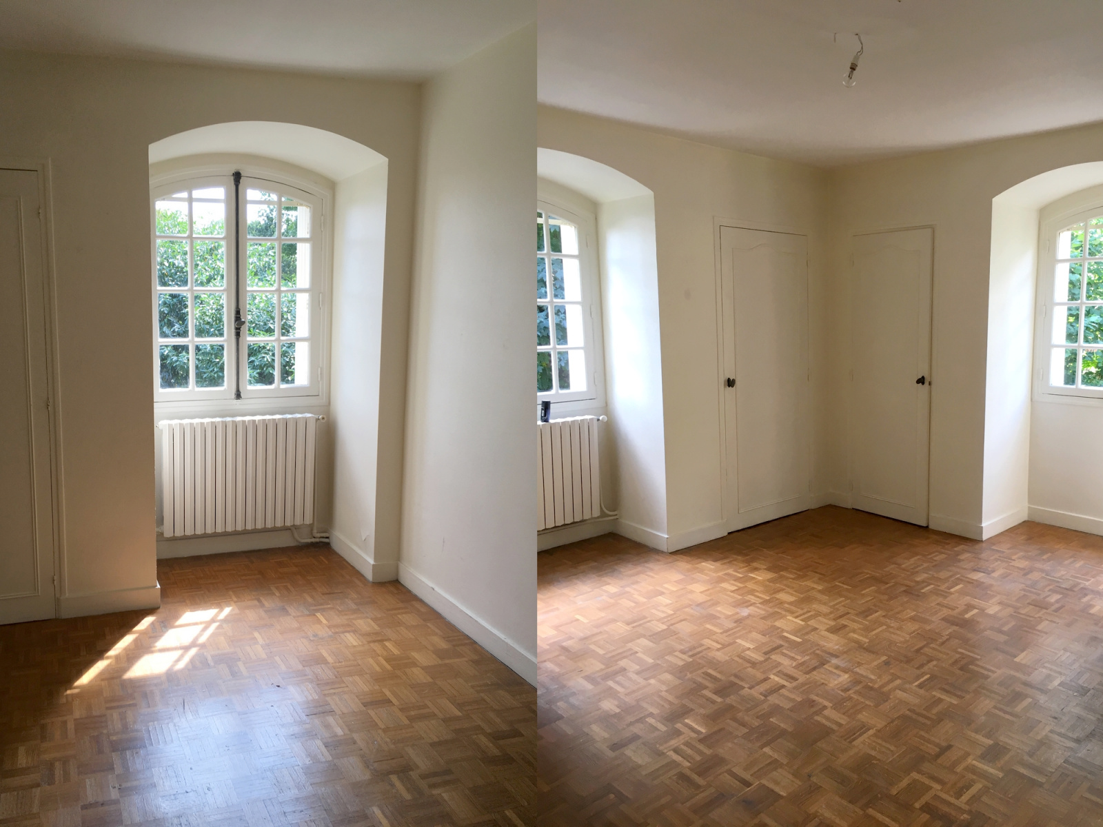 Au premier, 3 grandes chambres, 2 salles de bains avec WC.