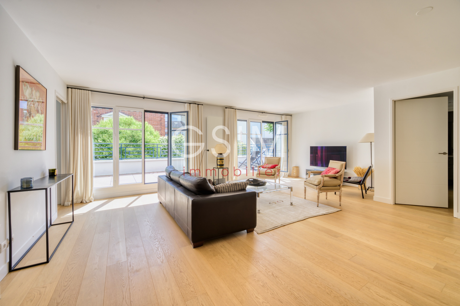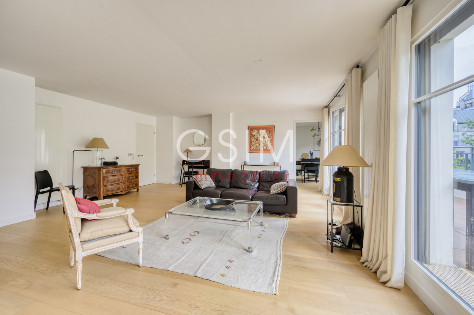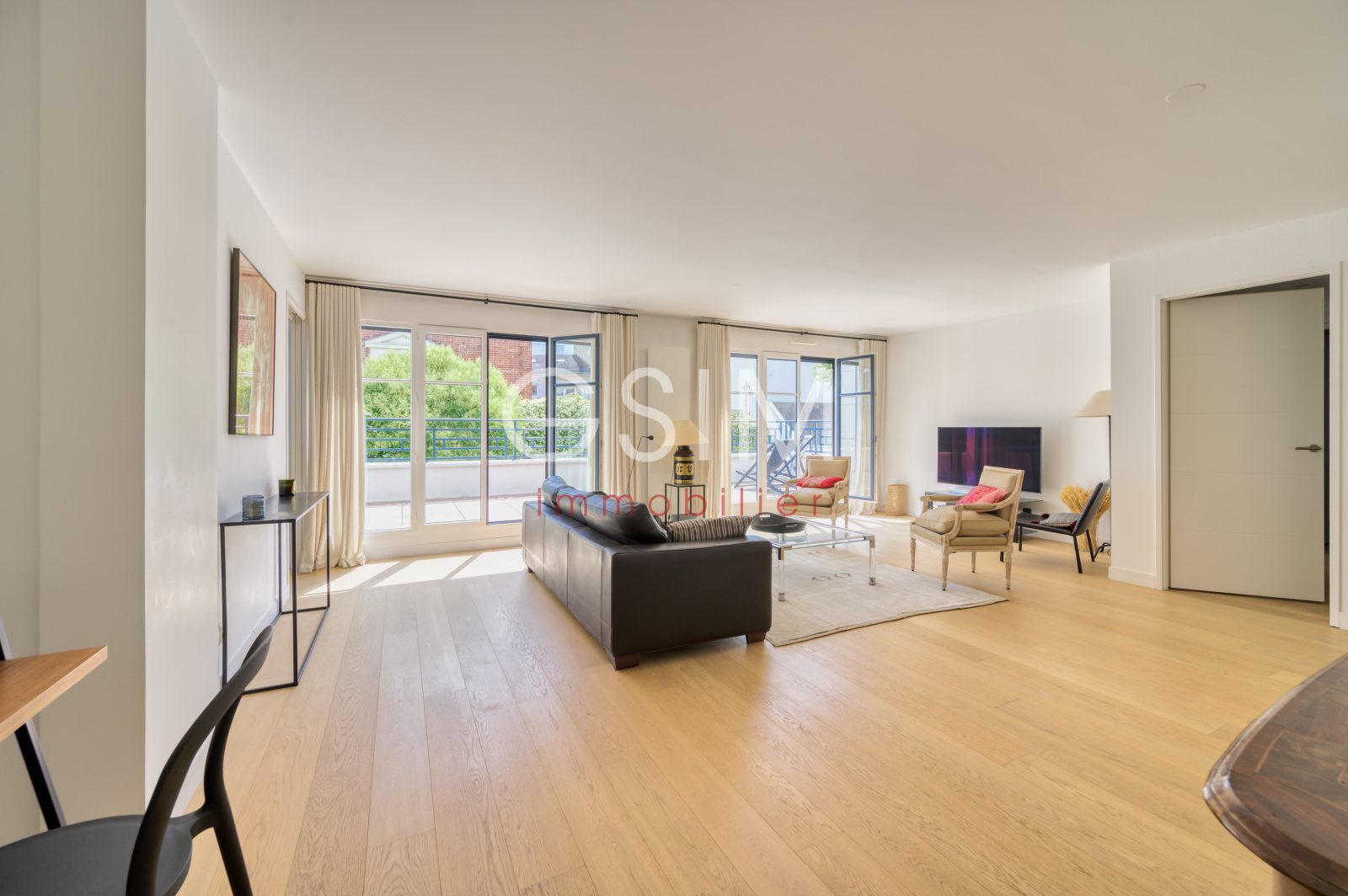 Il est composé d'une grande entrée, un double séjour de 39m² et son coin bureau donnant sur la terrasse exposée Sud-Est , une grande cuisine/salle à manger signée Rubioni de 21m² entièrement équipée de matériaux de qualité, une grande chambre avec dressing et salle de bains/wc, une autre chambre avec placards et salle de douche, un wc séparé avec lave-mains.
