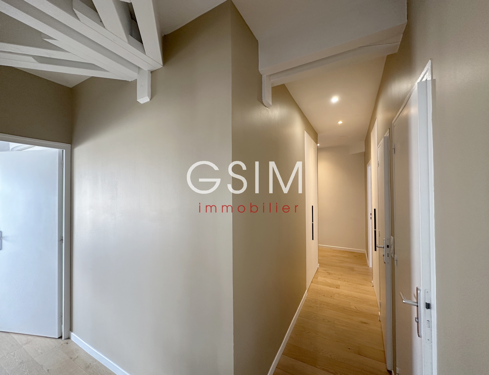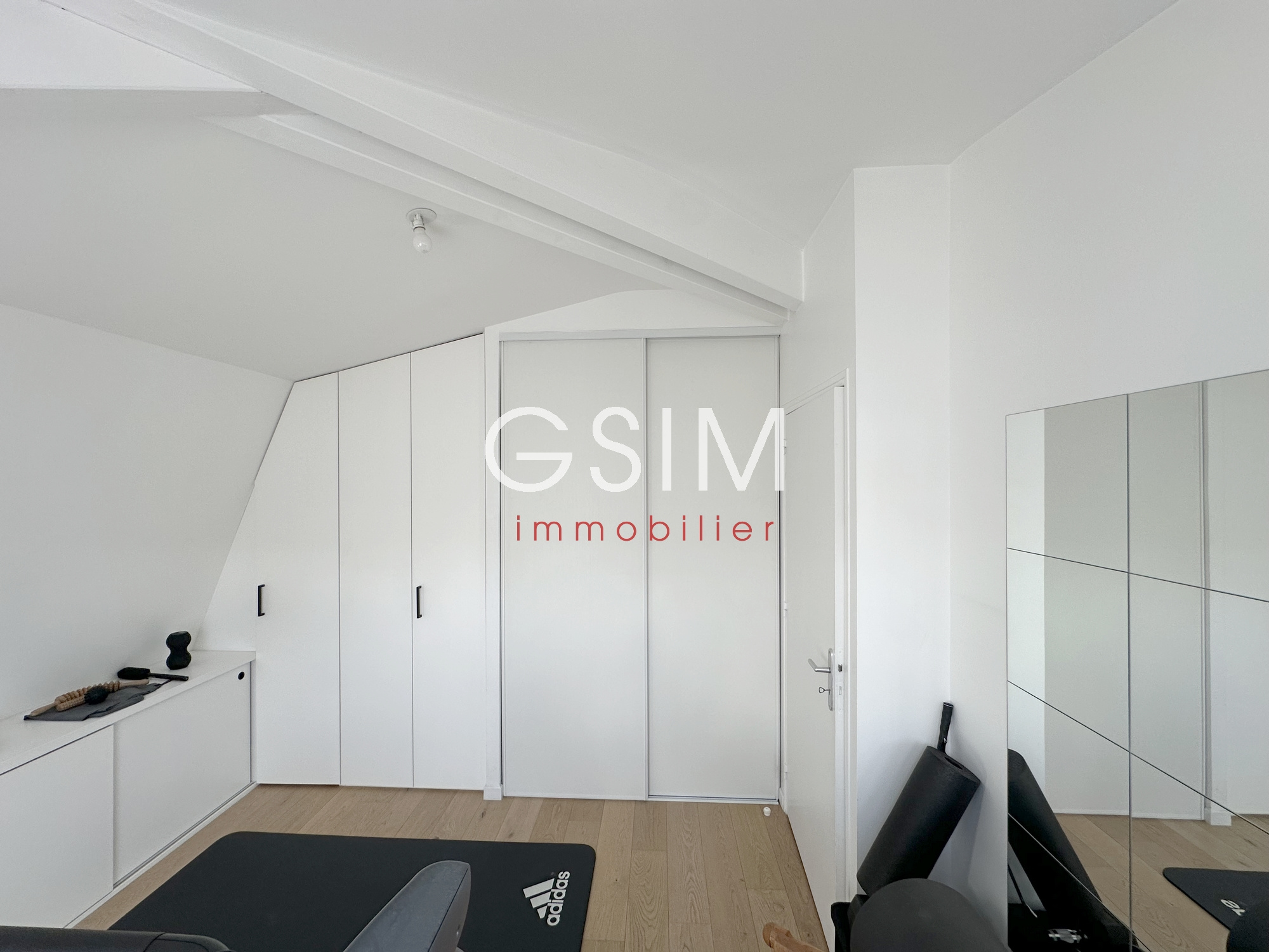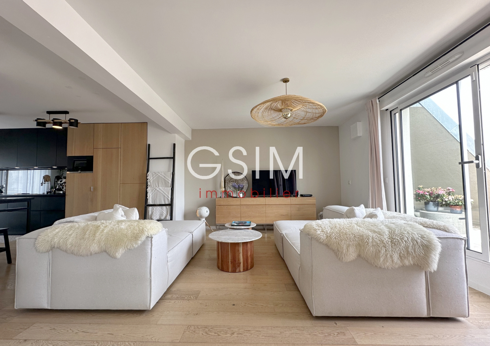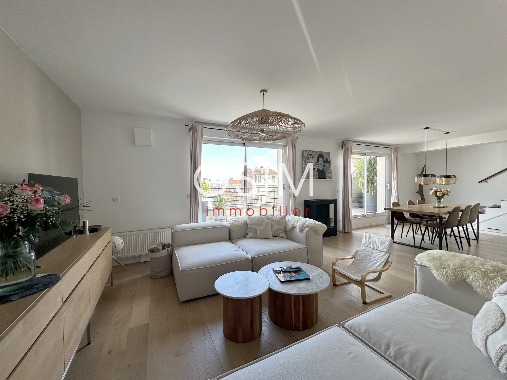 Proche des Ecoles, des commerces, et des transports, au dernier étage d'un immeuble de standing récent (2017), magnifique appartement familial de 139 m² en duplex avec terrasses et vue sur Paris et la tour Eiffel se composant :